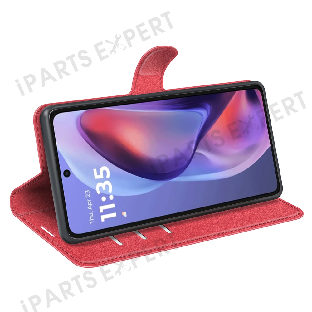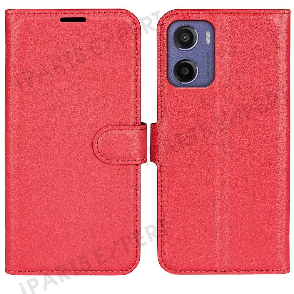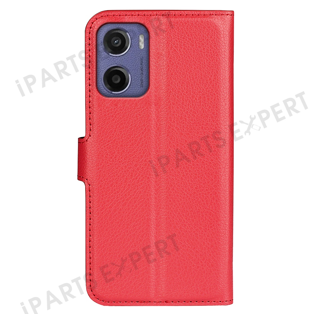 For Motorola Moto E15 4G Case Litchi Texture Shockproof Leather Wallet Phone Cover - Red