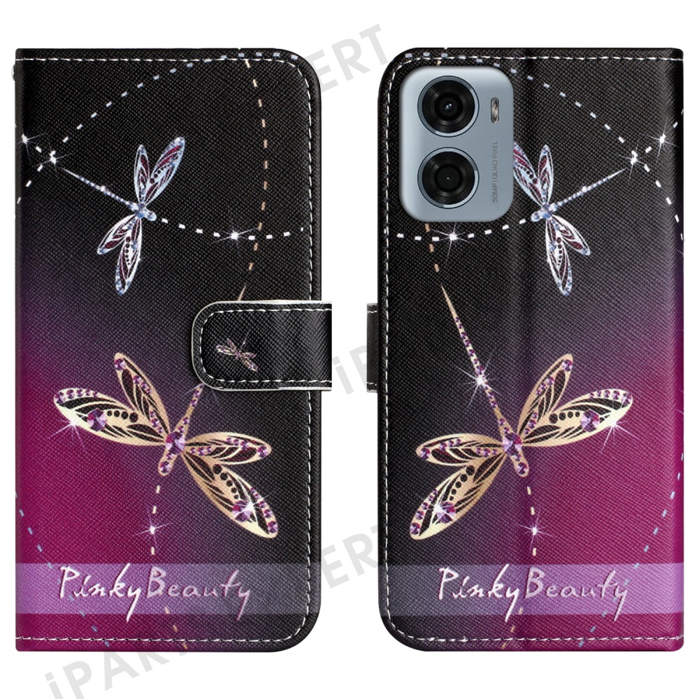 For Motorola Moto E15 4G / G05 4G Case Pattern Print PU Leather Wallet Phone Cover Cross Texture - Dragonfly