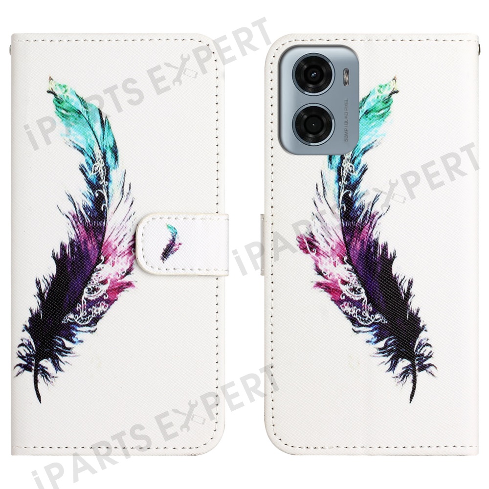 For Motorola Moto E15 4G / G05 4G Case Pattern Print PU Leather Wallet Phone Cover Cross Texture - Feather