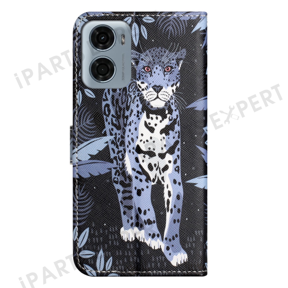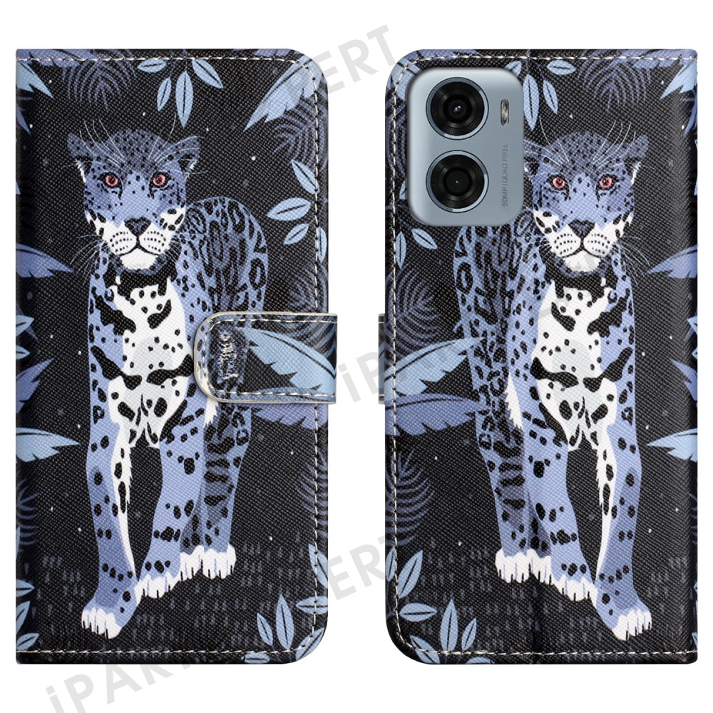 For Motorola Moto E15 4G / G05 4G Case Pattern Print PU Leather Wallet Phone Cover Cross Texture - Leopard