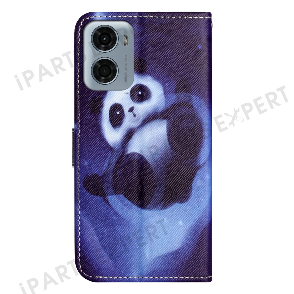 For Motorola Moto E15 4G / G05 4G Case Pattern Print PU Leather Wallet Phone Cover Cross Texture - Panda