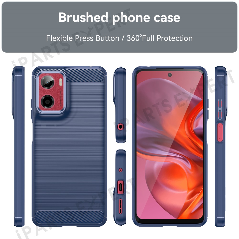 For Motorola Moto E15 4G / G05 4G Case Protective Phone Cover Carbon Fiber Texture Brushed - Blue