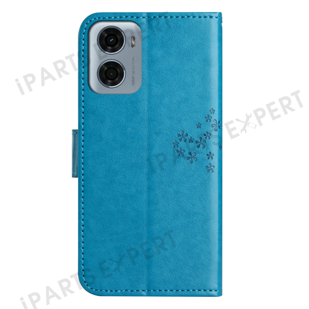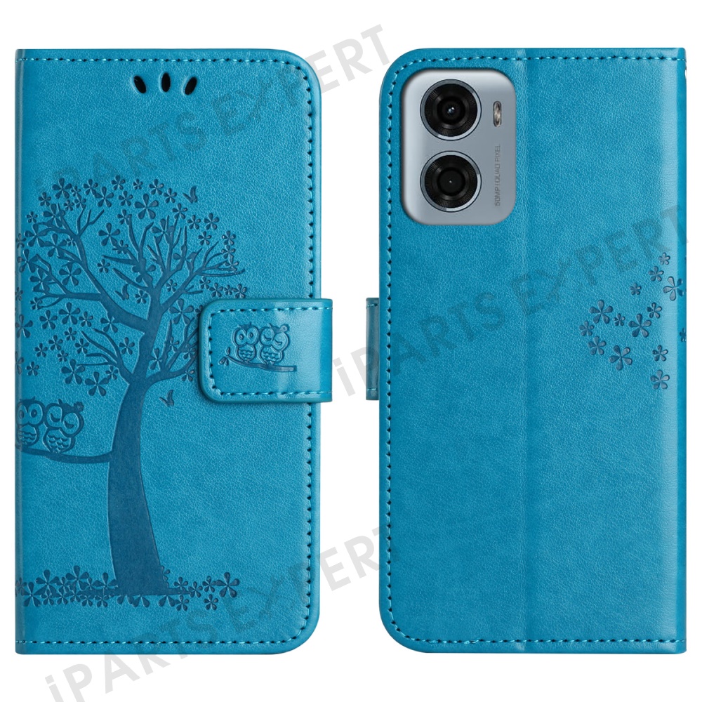 For Motorola Moto E15 4G / G05 4G Case PU Leather Owl Tree Imprinted Wallet Phone Cover - Blue