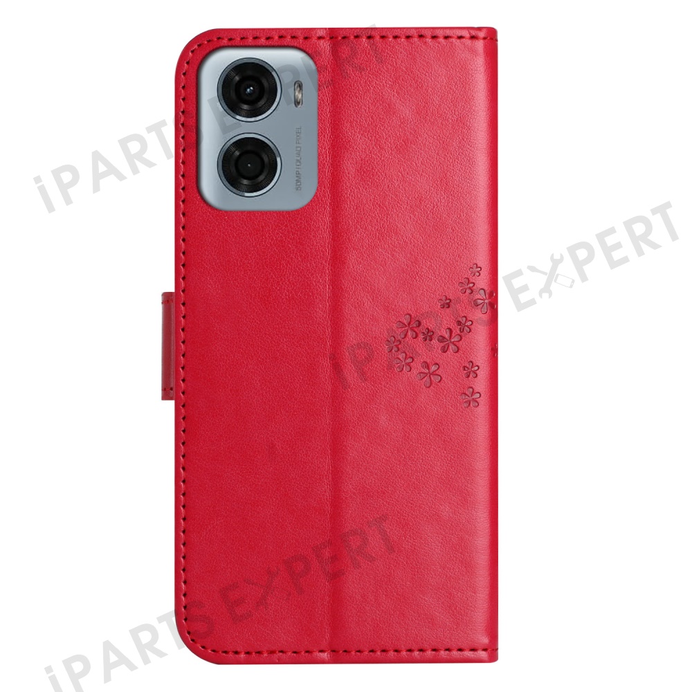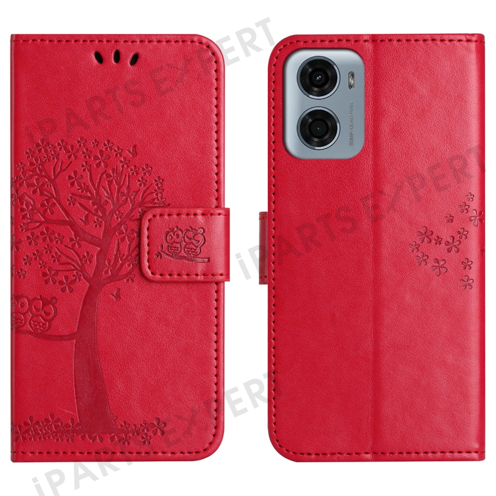 For Motorola Moto E15 4G / G05 4G Case PU Leather Owl Tree Imprinted Wallet Phone Cover - Red