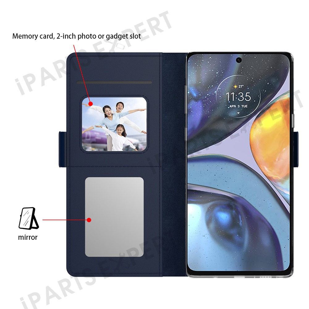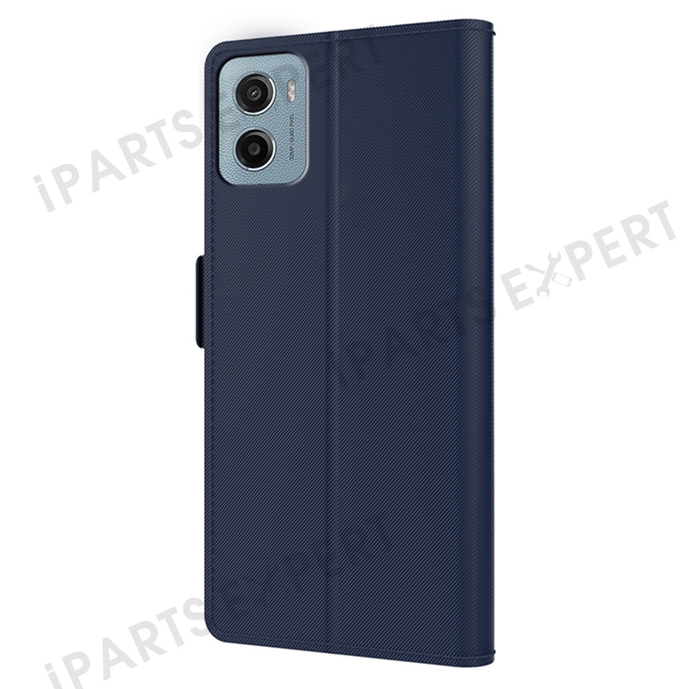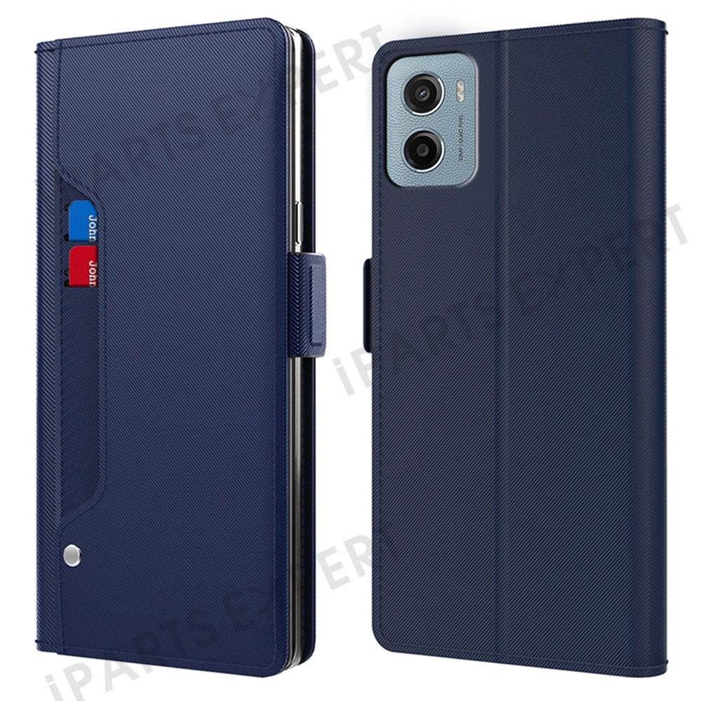 For Motorola Moto E15 4G / G05 4G Case Stand PU Leather Phone Cover Card Holder Mirror - Blue