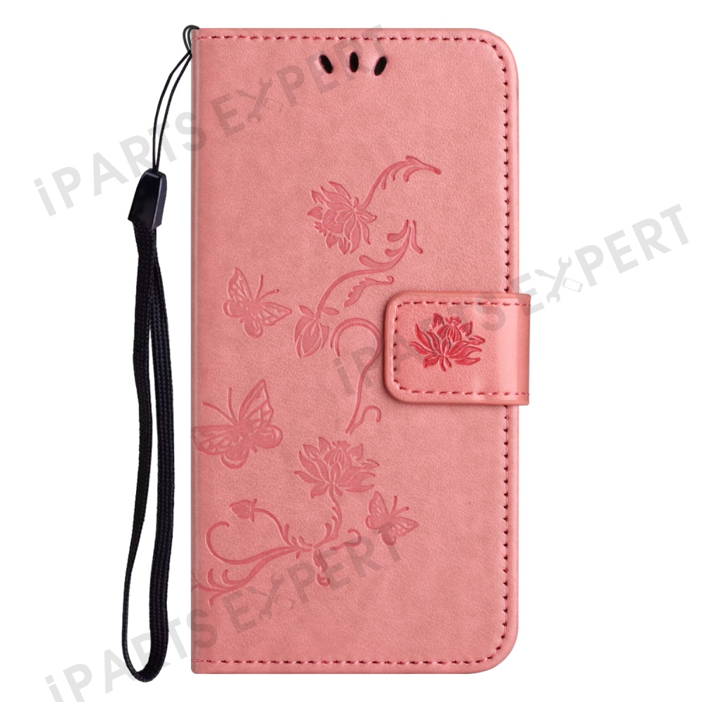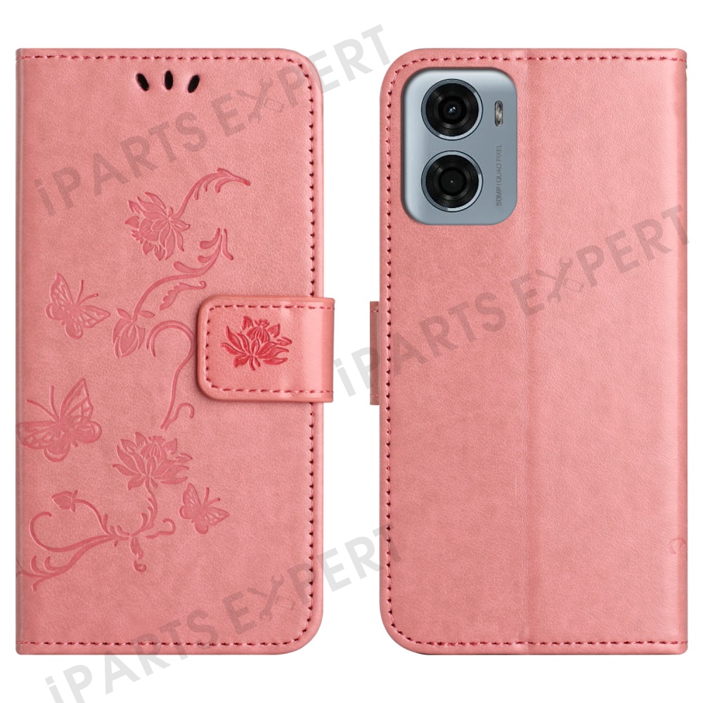 For Motorola Moto E15 4G / G05 4G Case Wallet Stand Imprinted Butterfly Flower PU Leather Phone Cover - Pink