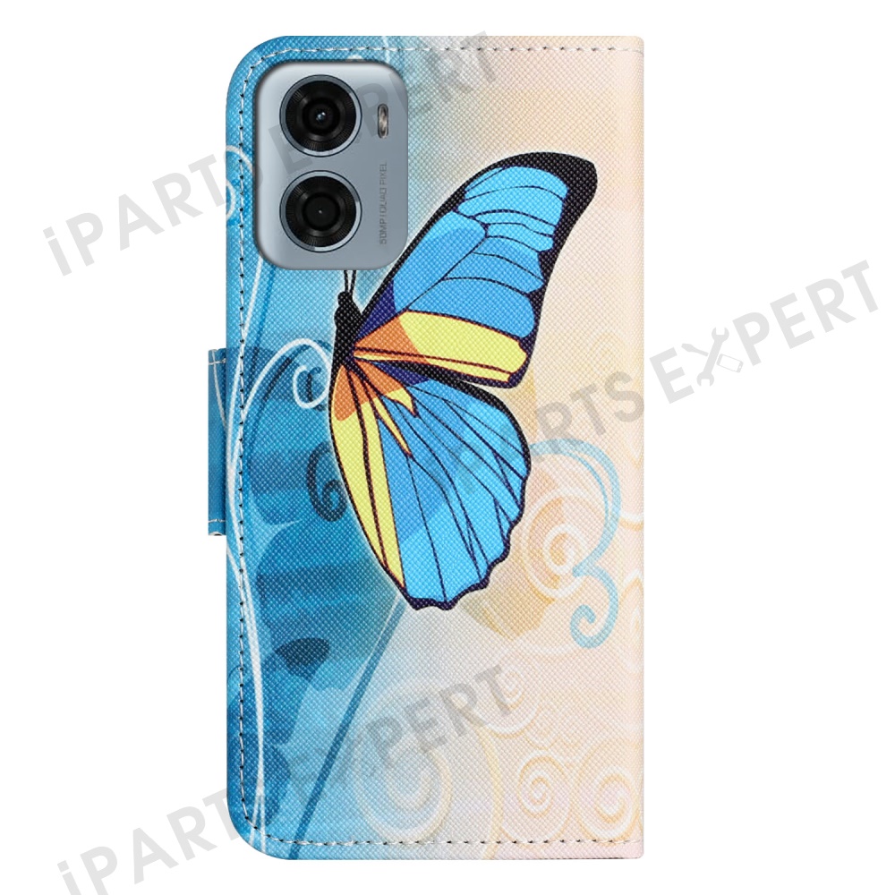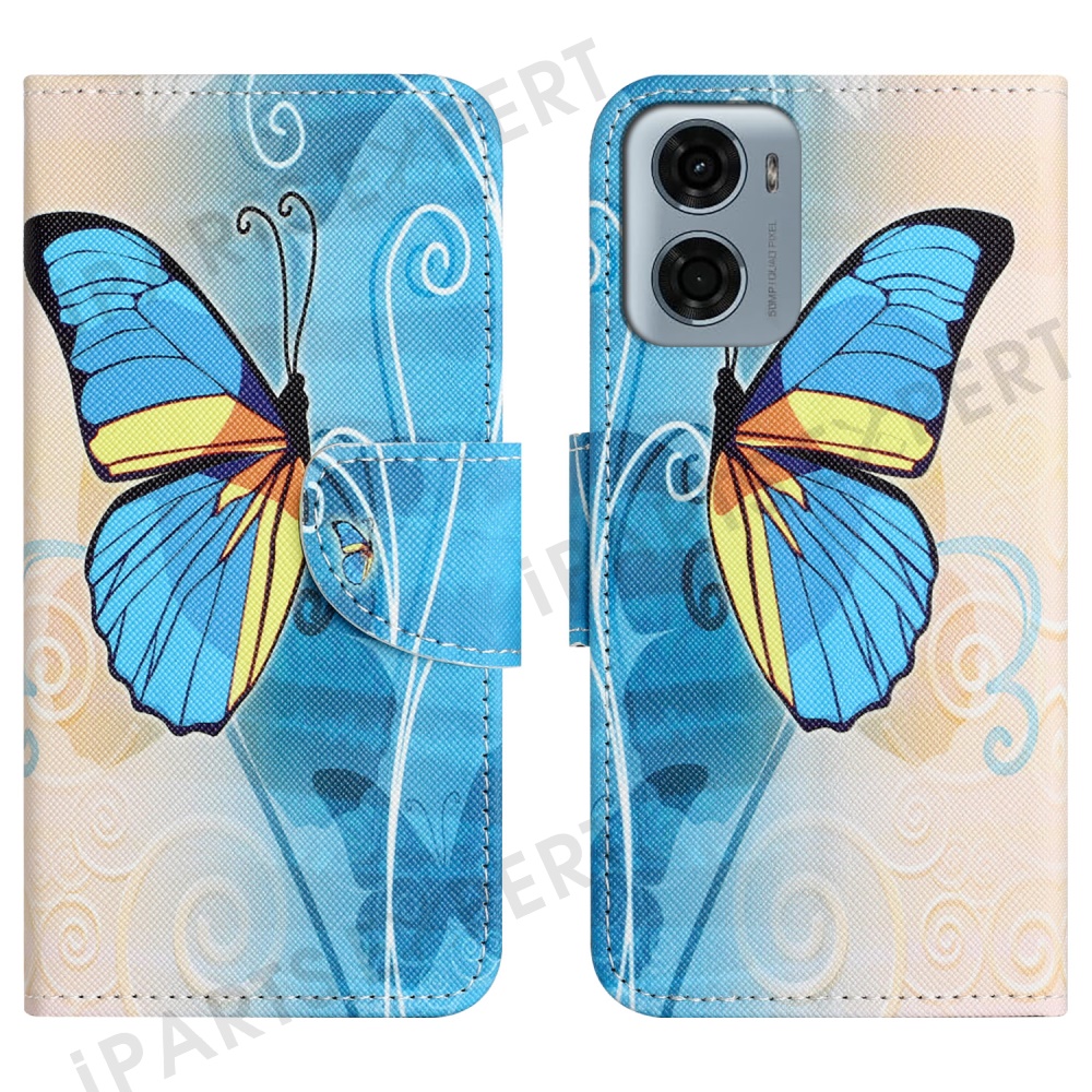 For Motorola Moto E15 4G / G05 4G Leather Case Pattern Printing Cross Texture Phone Cover - Butterfly