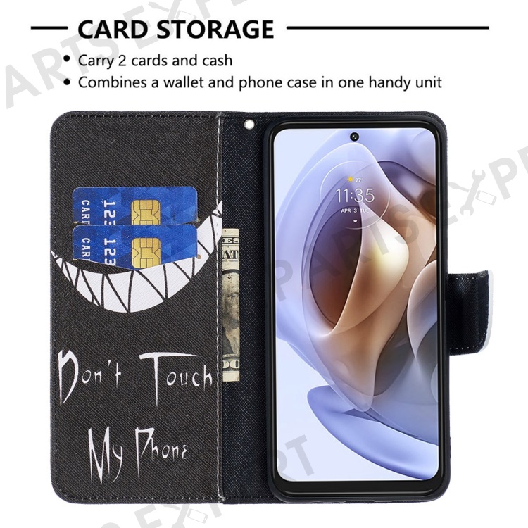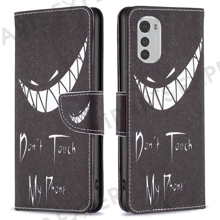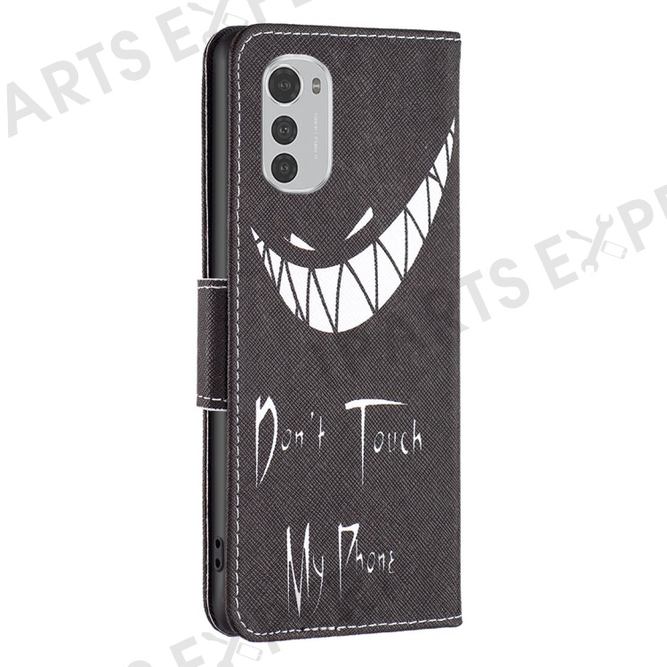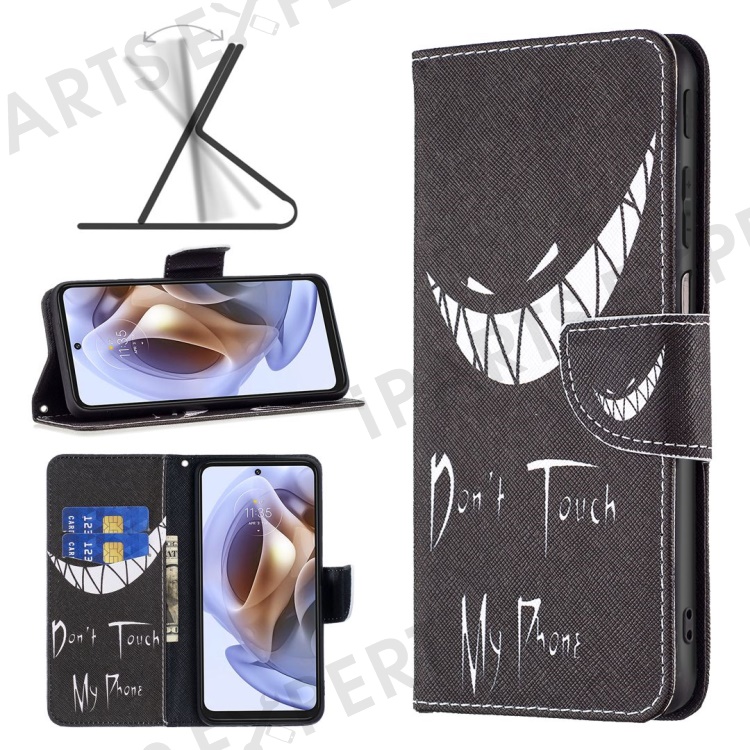 For Motorola Moto E32 4G Phone Case Pattern Printing PU Leather Wallet Stand Cover - Don't Touch My Phone