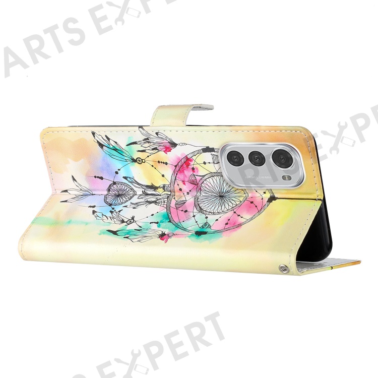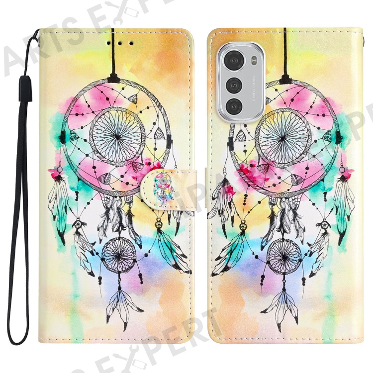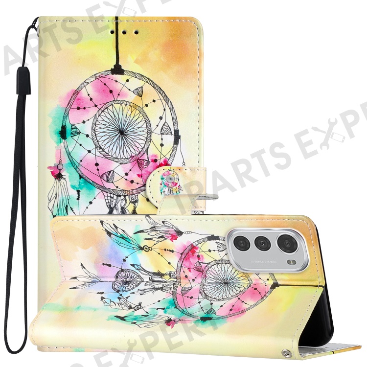For Motorola Moto E32 4G Pattern Printing PU Leather Anti-drop Phone Case Stand Wallet Flip Magnetic Protective Phone Cover with Strap - Wind Chime