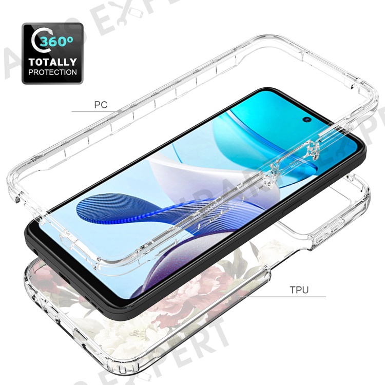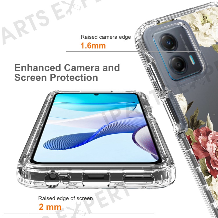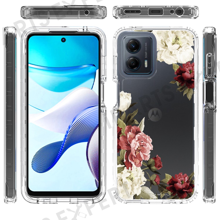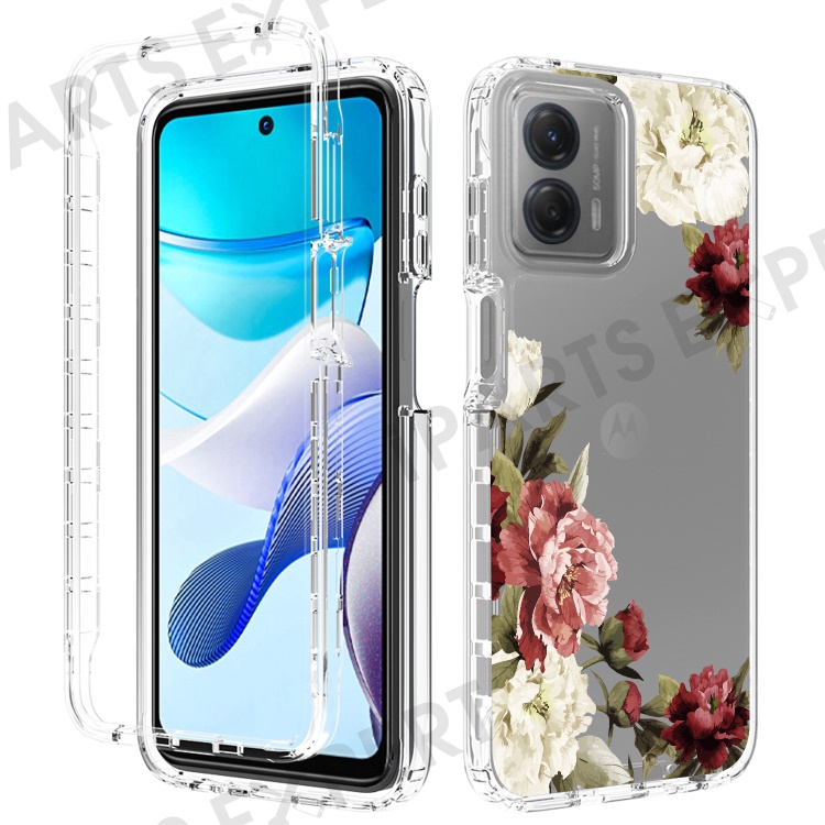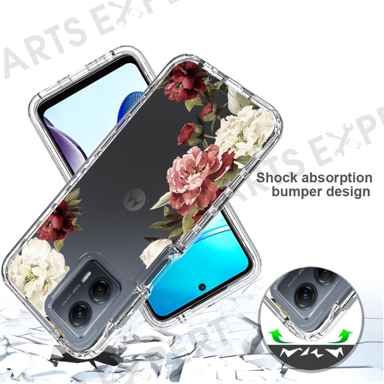 For Motorola Moto G 5G (2023) / Moto G Power 5G Transparent Phone Case PC Frame + TPU Pattern Printing Cover - Trumpet Flower