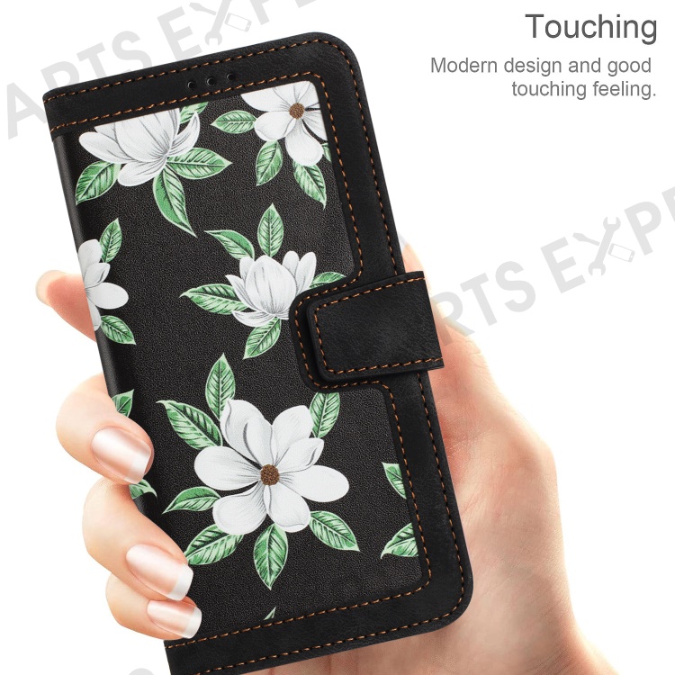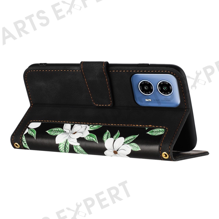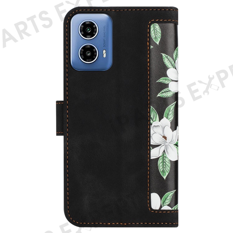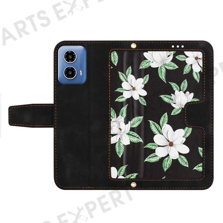 For Motorola Moto G 5G (2024) Case Flower Pattern PU Leather Phone Cover with Card Holder - Black