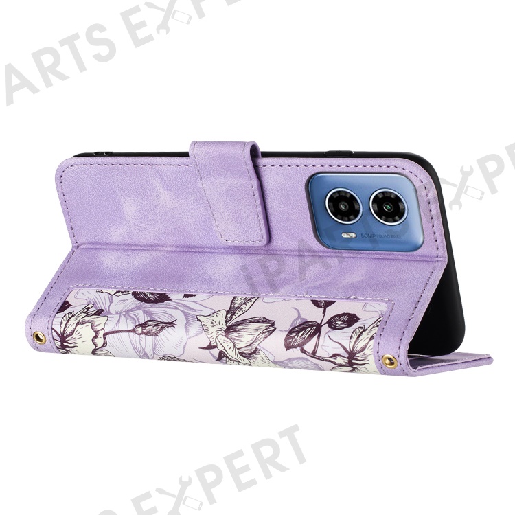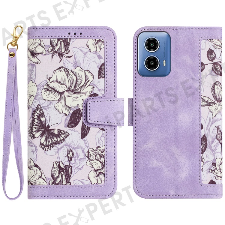 For Motorola Moto G 5G (2024) Case Flower Pattern PU Leather Phone Cover with Card Holder - Light Purple