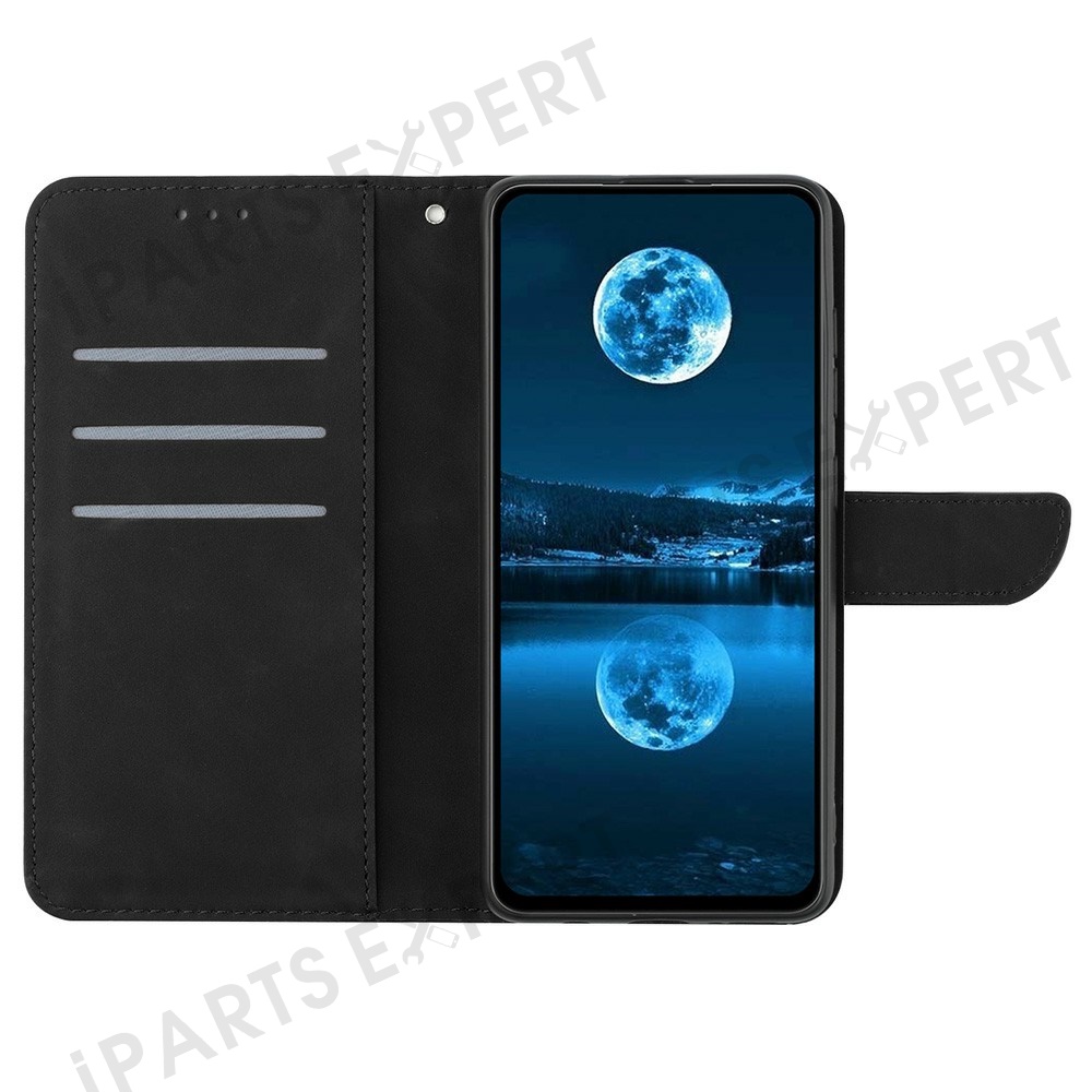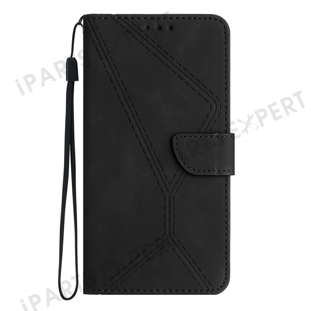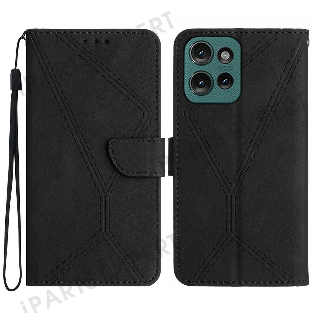 For Motorola Moto G 5G (2025) Case Skin-Touch Lines PU Leather Flip Phone Cover - Black
