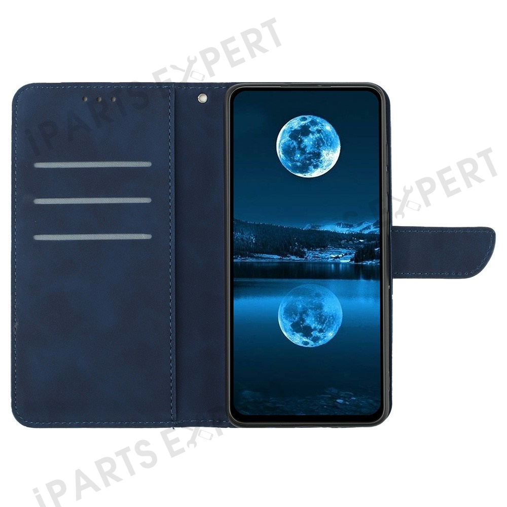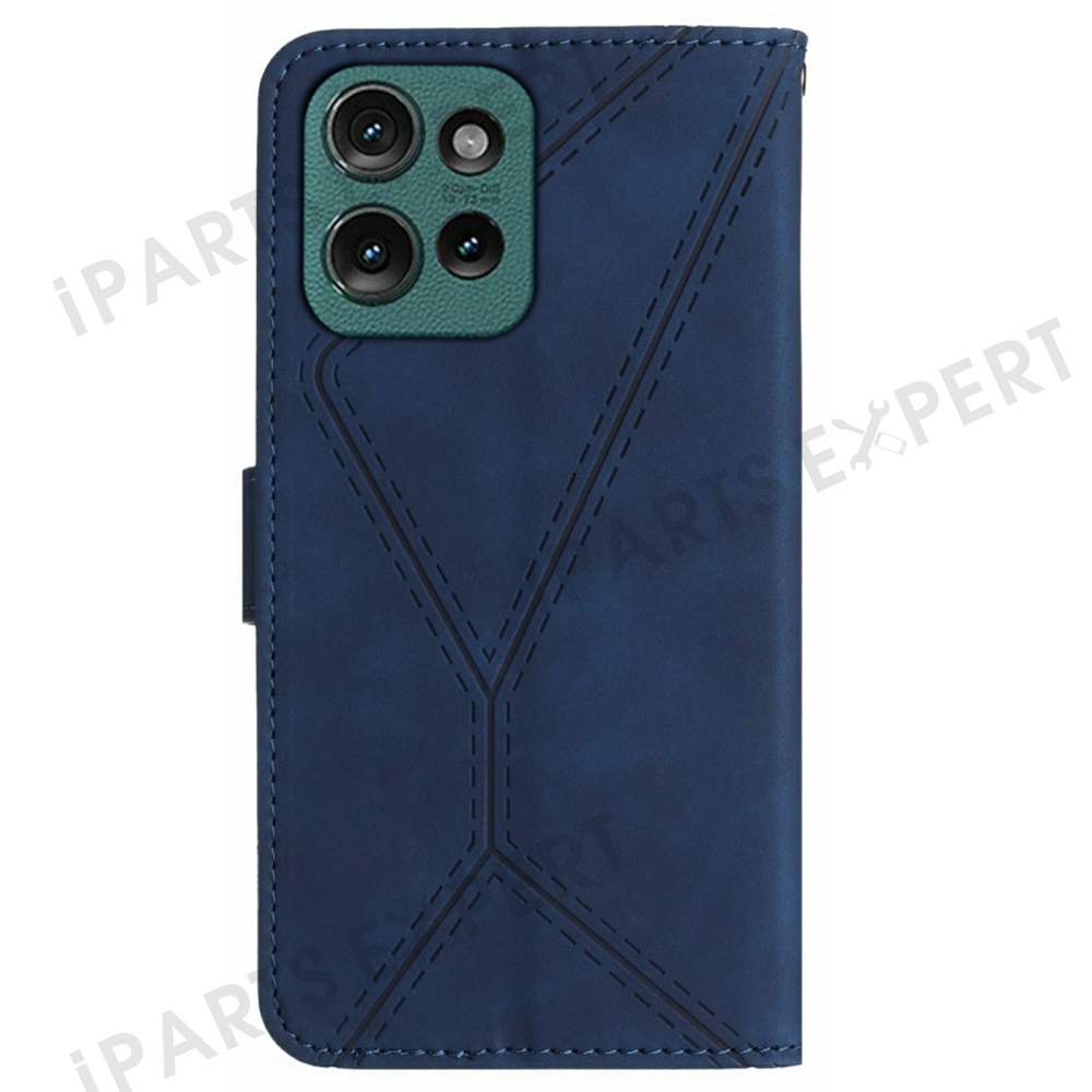 For Motorola Moto G 5G (2025) Case Skin-Touch Lines PU Leather Flip Phone Cover - Blue