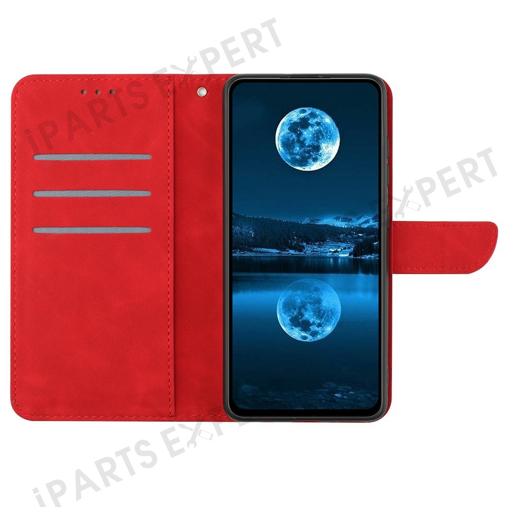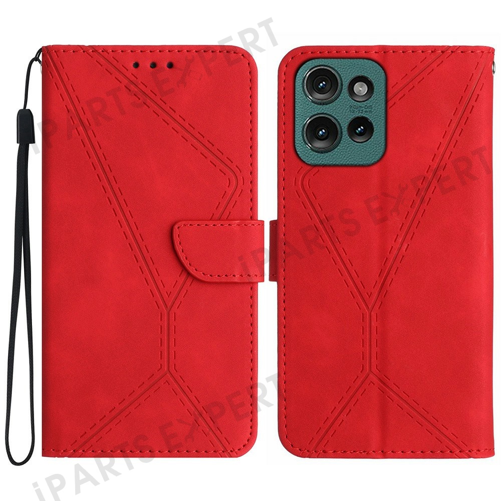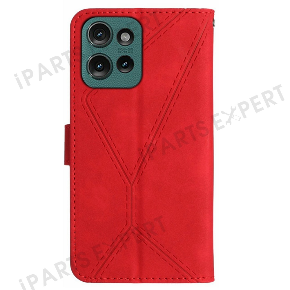 For Motorola Moto G 5G (2025) Case Skin-Touch Lines PU Leather Flip Phone Cover - Red
