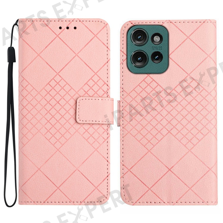 For Motorola Moto G Play (2025) 4G / G Power (2025) Wallet Phone Case Imprint PU Leather Flip Folio Cover - Pink