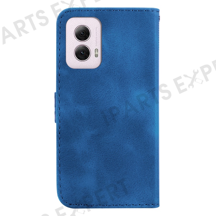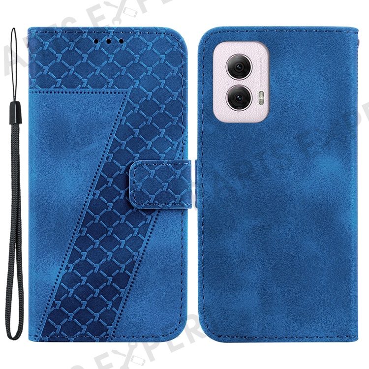 For Motorola Moto G Power (2024) Case PU Leather 7-Shape Pattern Flip Folio Phone Cover - Dark Blue