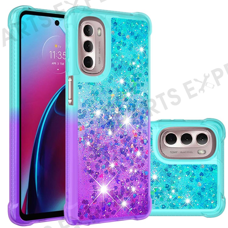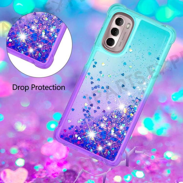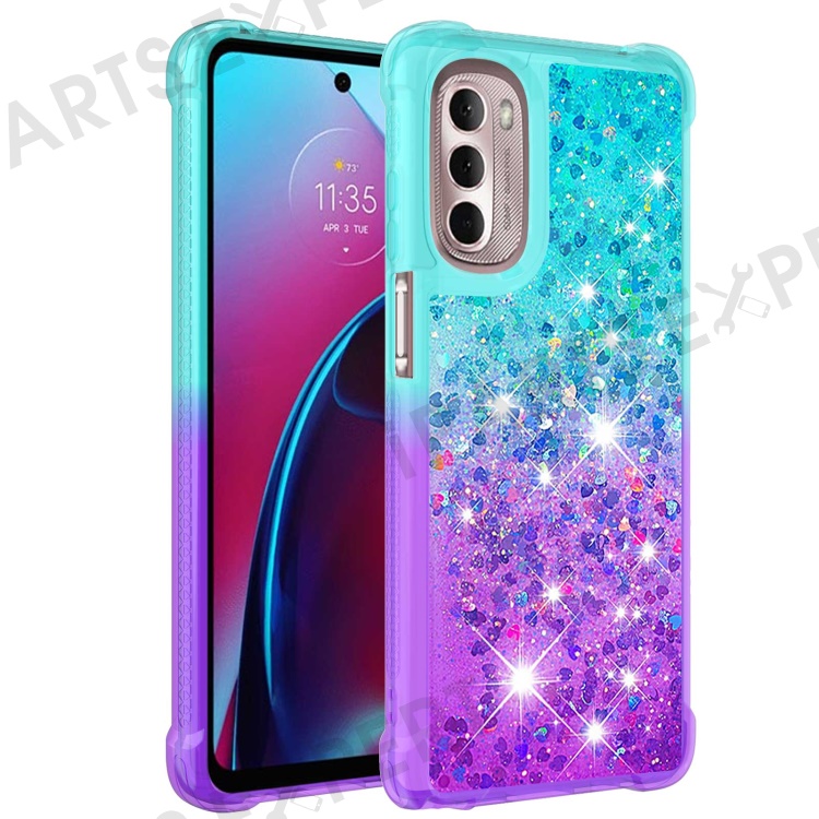 For Motorola Moto G Stylus 5G (2022) YB Quicksand Series-3 Liquid Case Gradient Quicksand Soft TPU Protective Shockproof Luxury Cover - Sky Blue/Purple