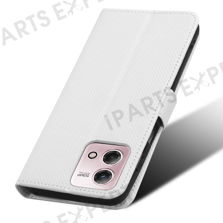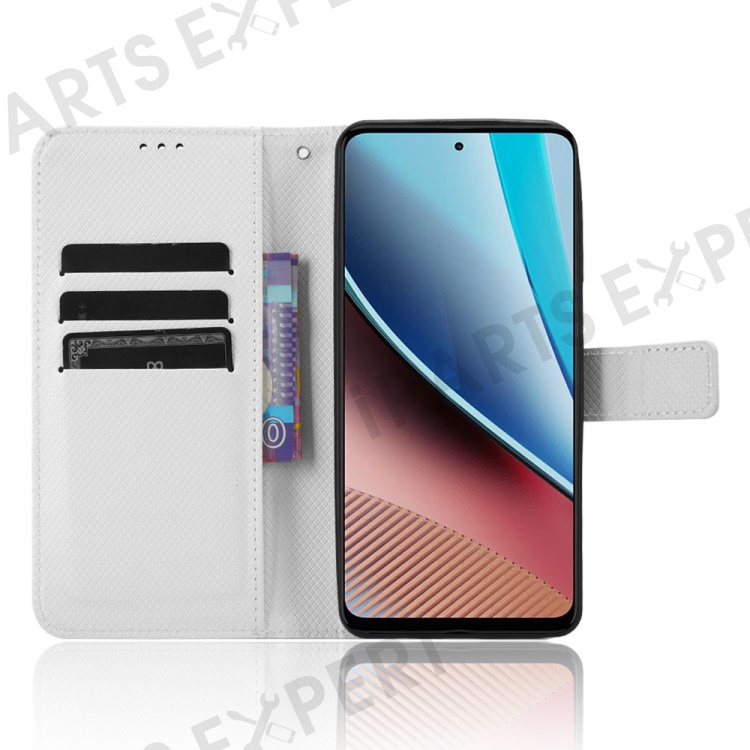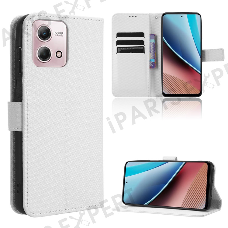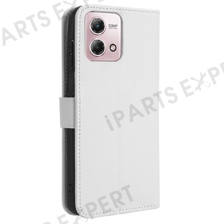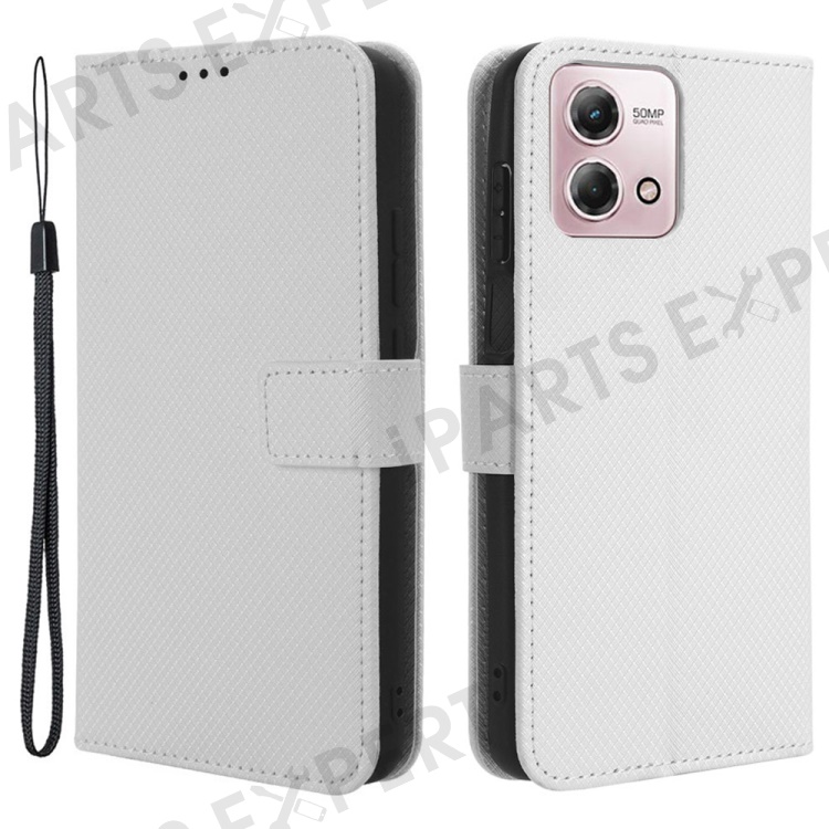For Motorola Moto G Stylus 5G (2023) Anti-Scratch Cover Diamond Texture PU Leather Stand Wallet Shockproof Case - White