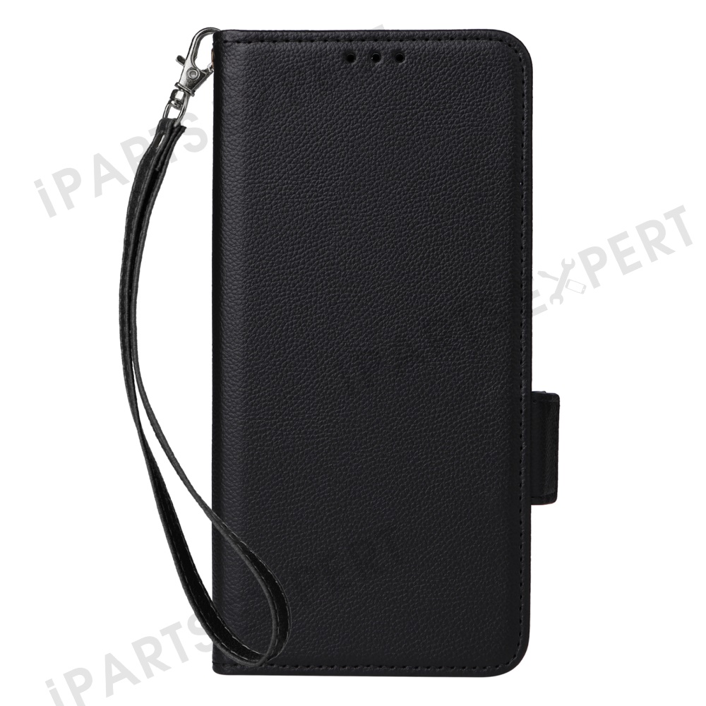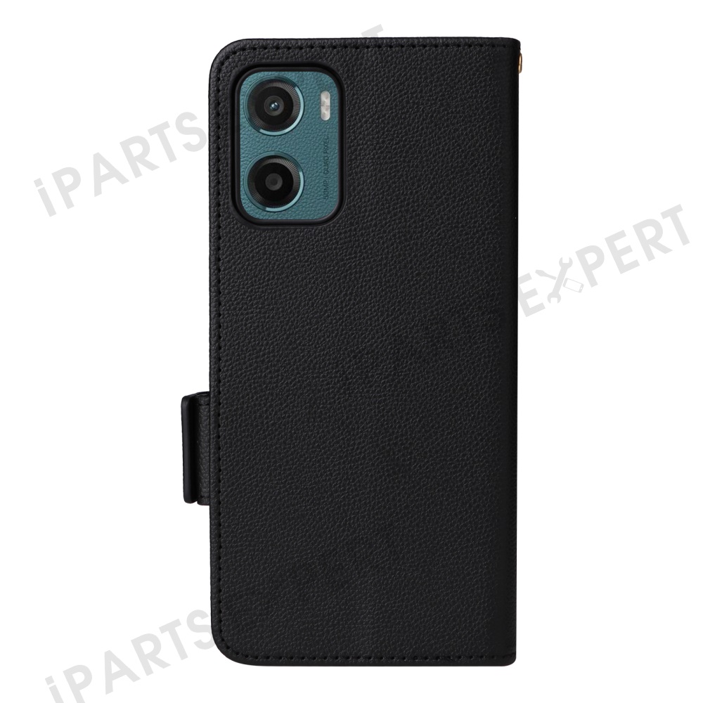 For Motorola Moto G05 4G / E15 4G Case with Wrist Strap Litchi Texture PU Leather Wallet Phone Cover - Black