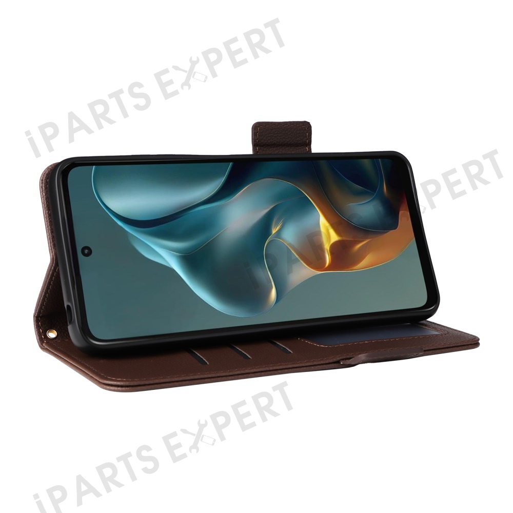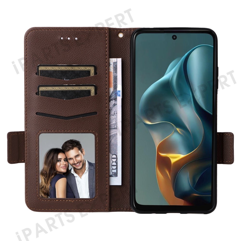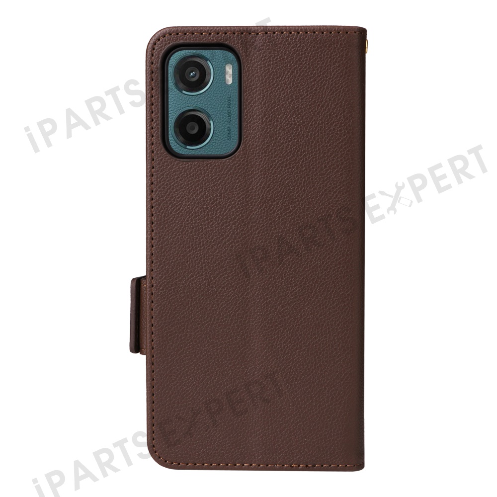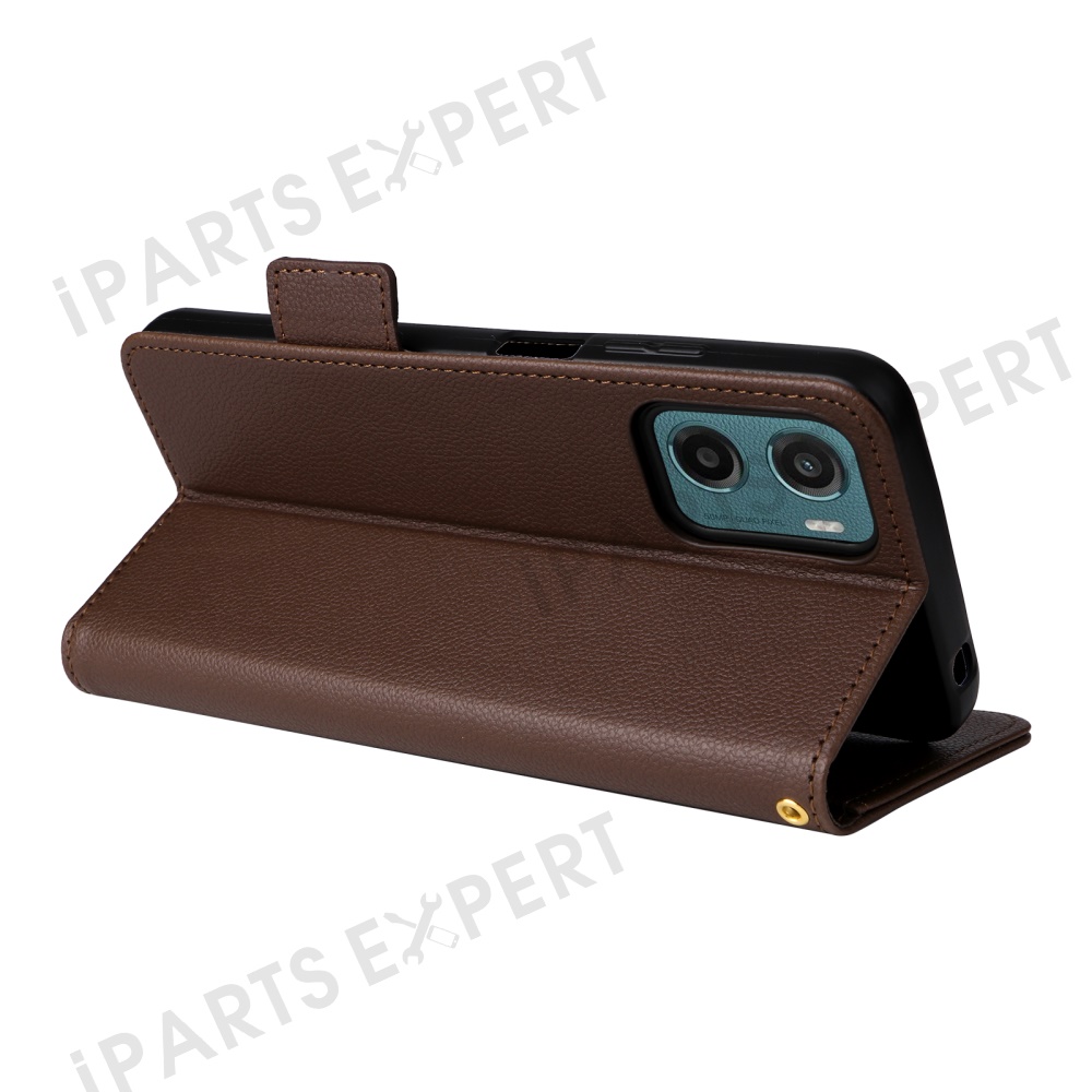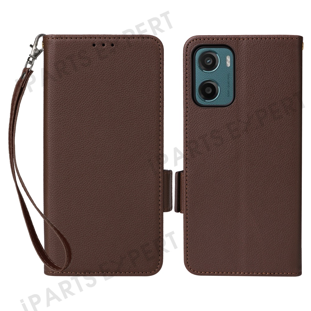 For Motorola Moto G05 4G / E15 4G Case with Wrist Strap Litchi Texture PU Leather Wallet Phone Cover - Brown