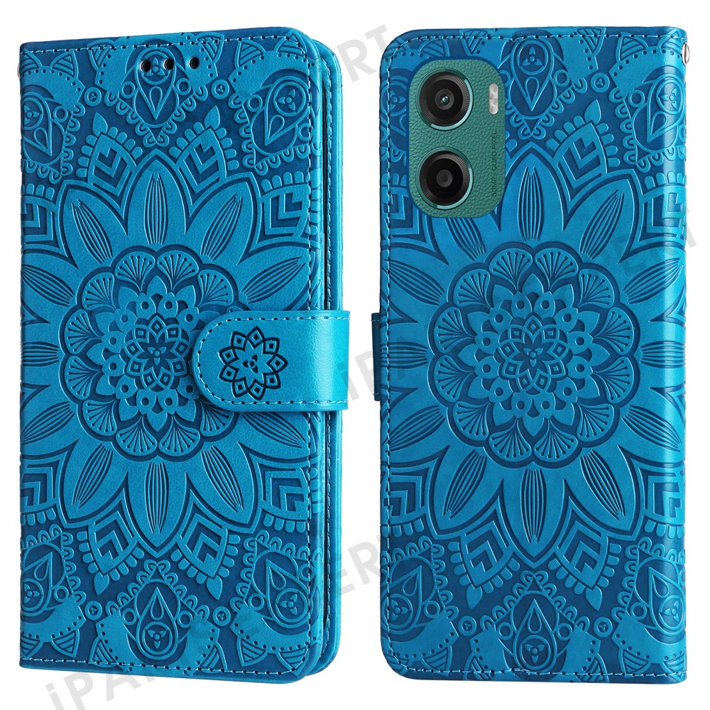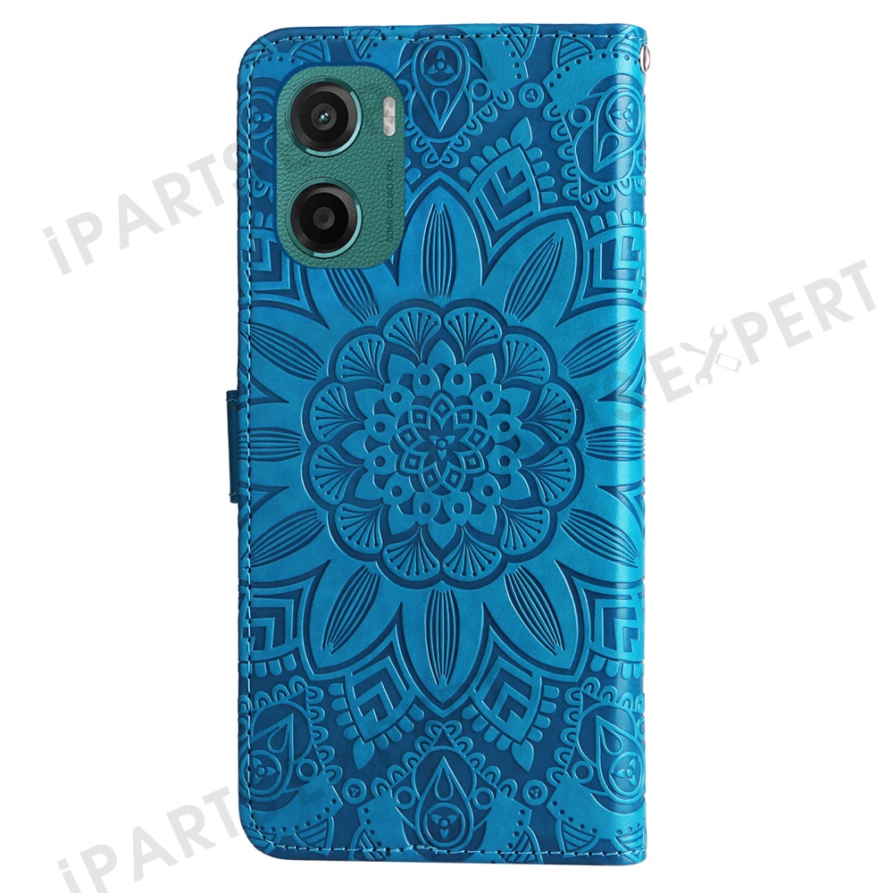 For Motorola Moto G05 4G / E15 4G Case Sunflower Imprint Leather Wallet Phone Cover - Blue