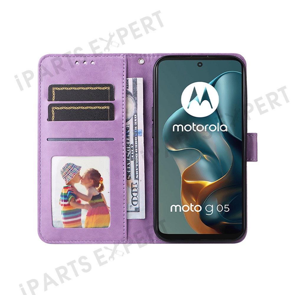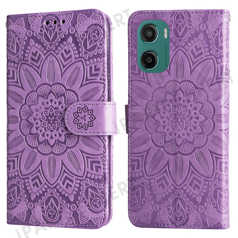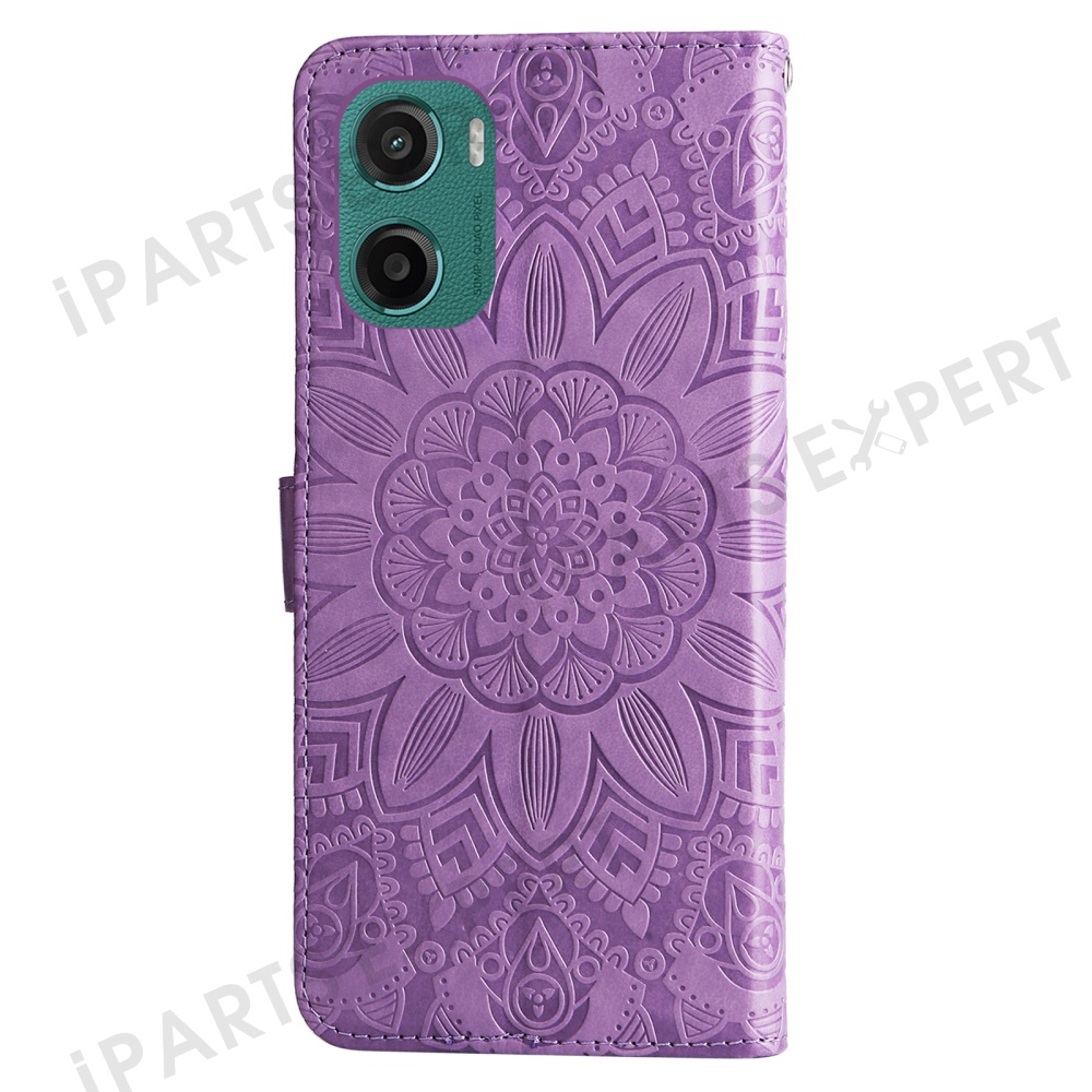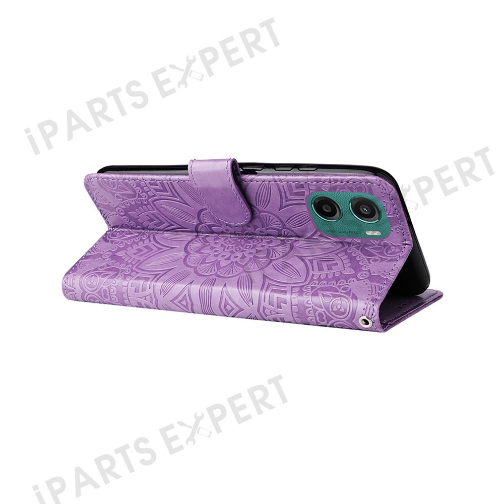 For Motorola Moto G05 4G / E15 4G Case Sunflower Imprint Leather Wallet Phone Cover - Purple