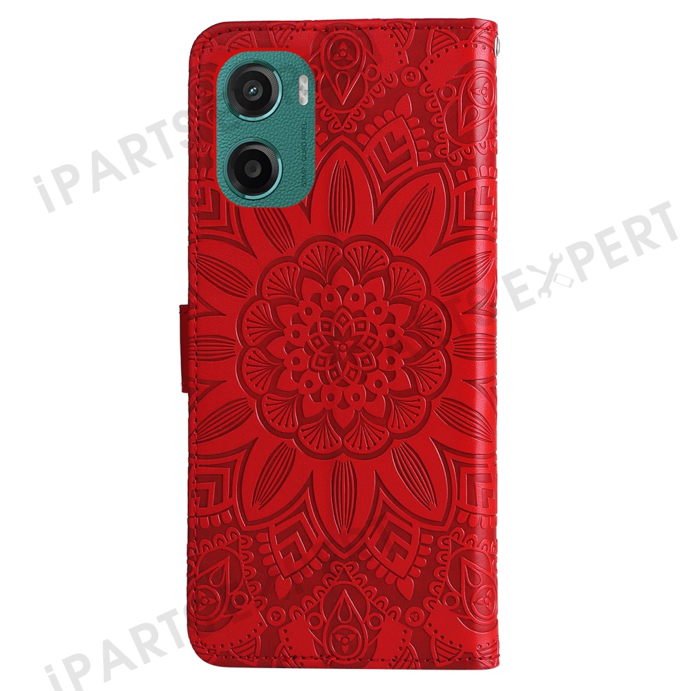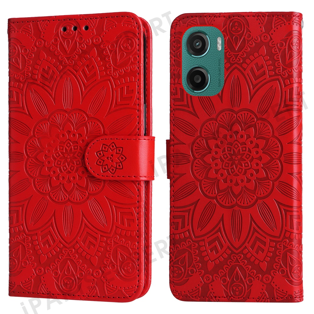 For Motorola Moto G05 4G / E15 4G Case Sunflower Imprint Leather Wallet Phone Cover - Red