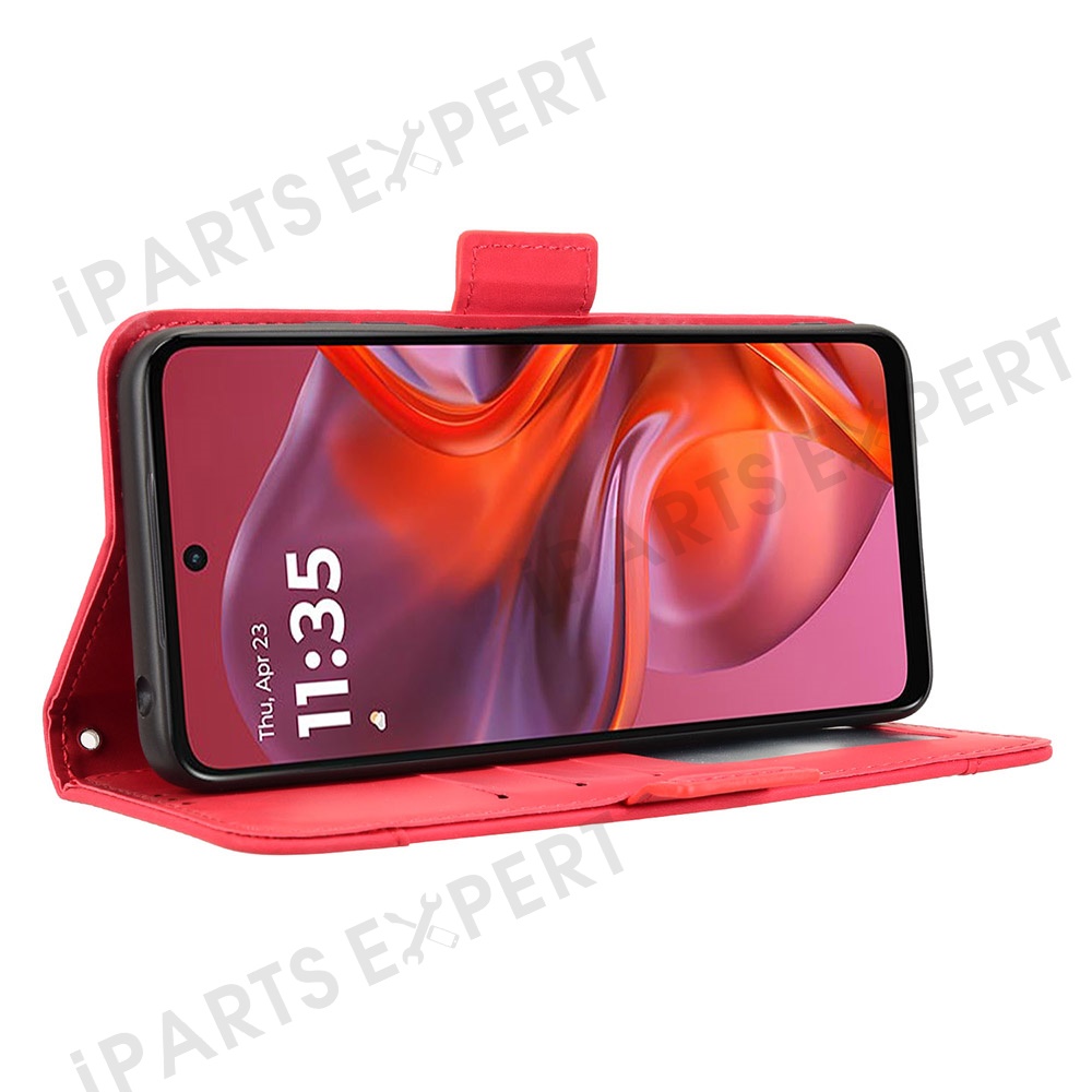 For Motorola Moto G05 4G / E15 4G Leather Case Phone Wallet Cover with Multiple Card Slots - Red