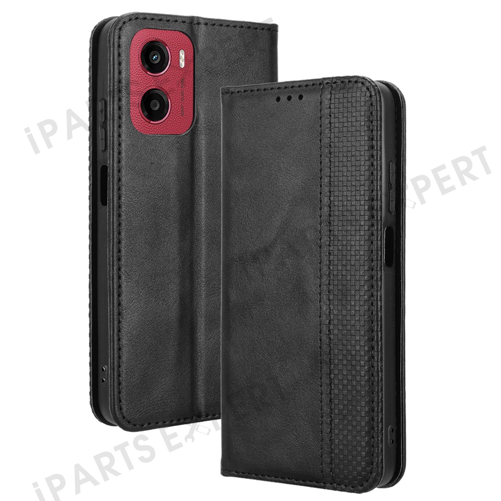 For Motorola Moto G05 4G / E15 4G Leather Case Wallet Stand Retro Texture Phone Cover - Black