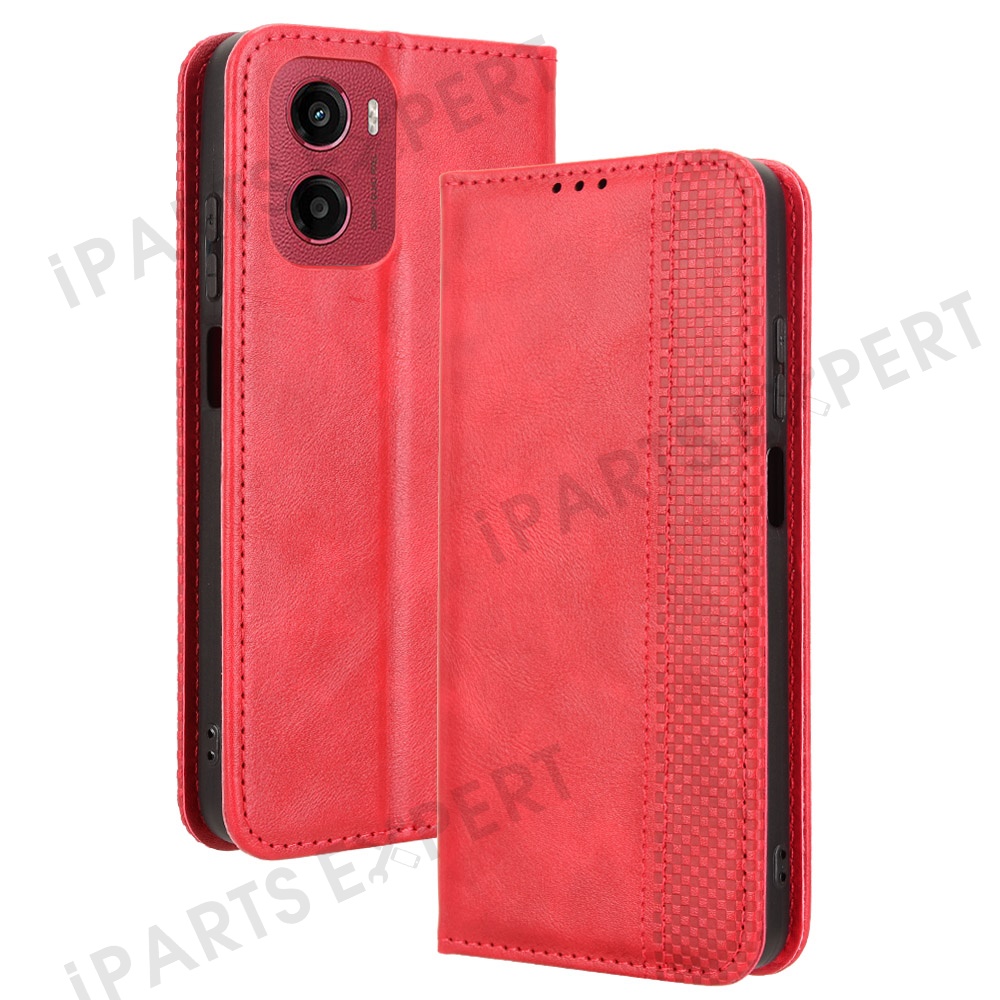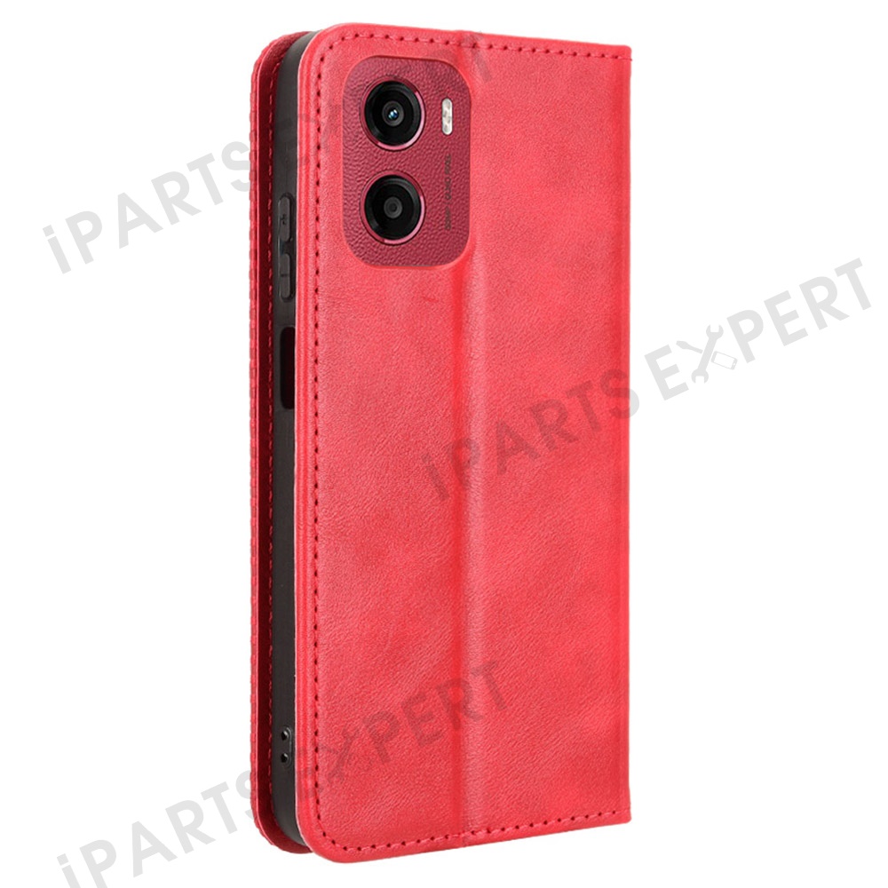 For Motorola Moto G05 4G / E15 4G Leather Case Wallet Stand Retro Texture Phone Cover - Red