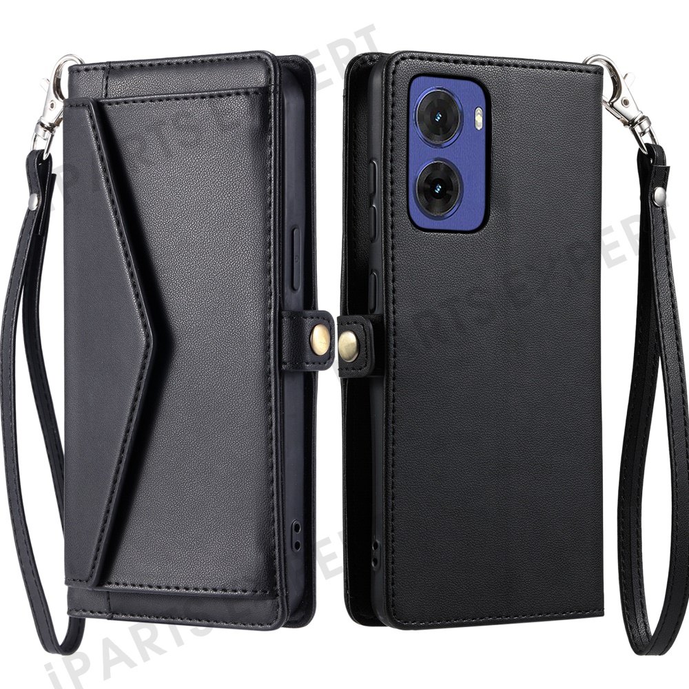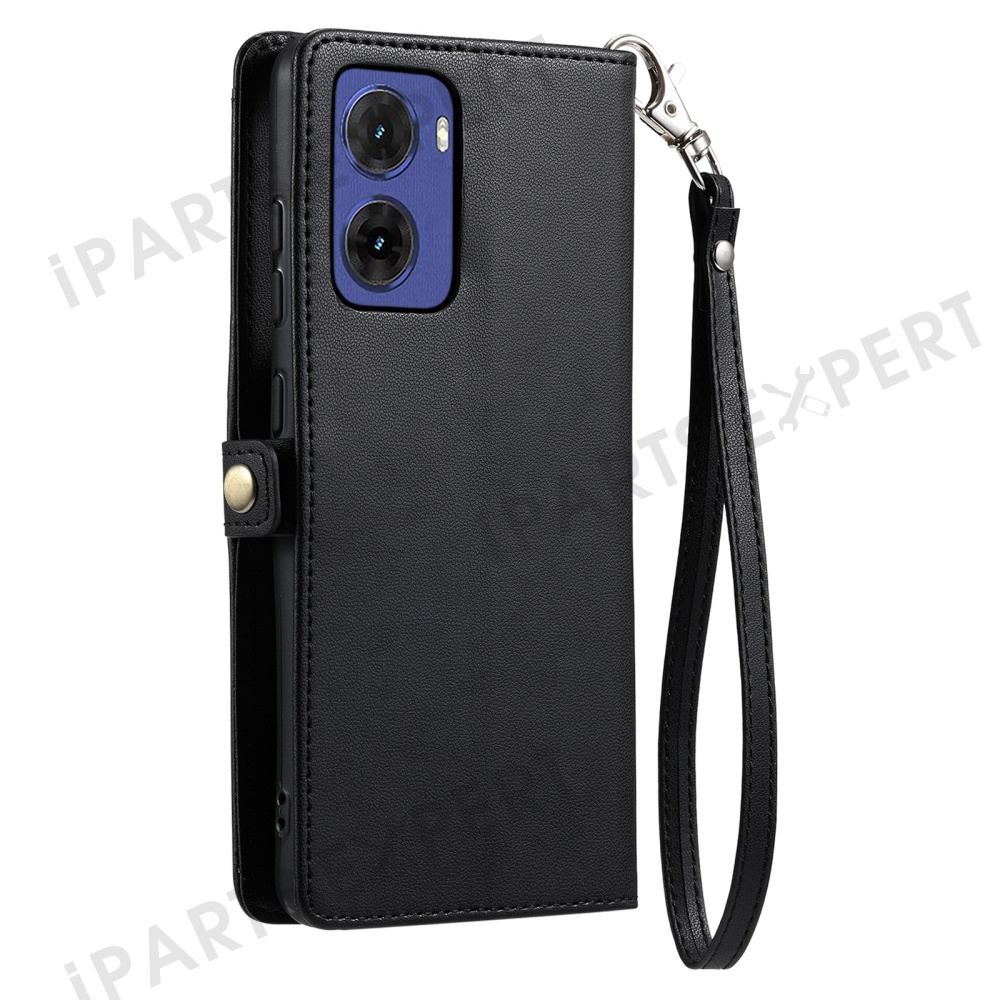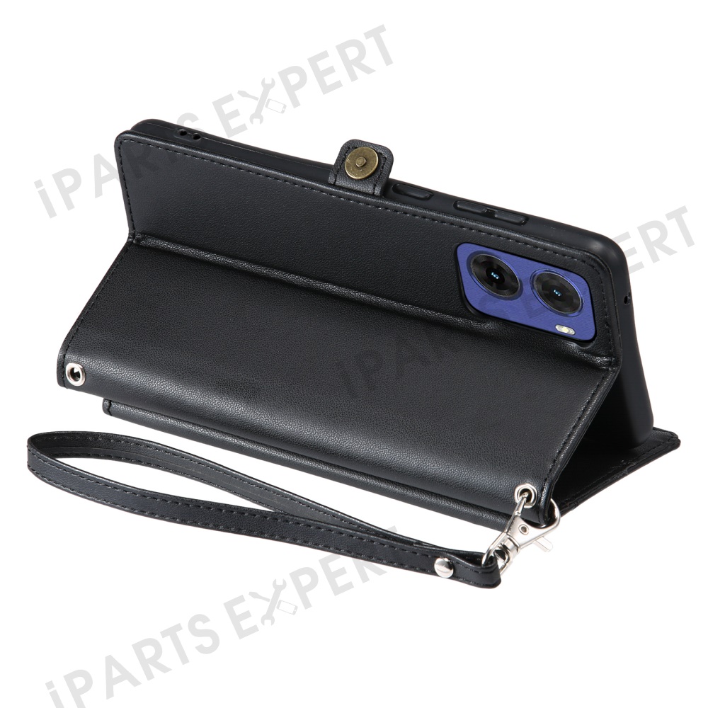 For Motorola Moto G05 4G Leather Case Wallet Stand Phone Cover with Straps - Black