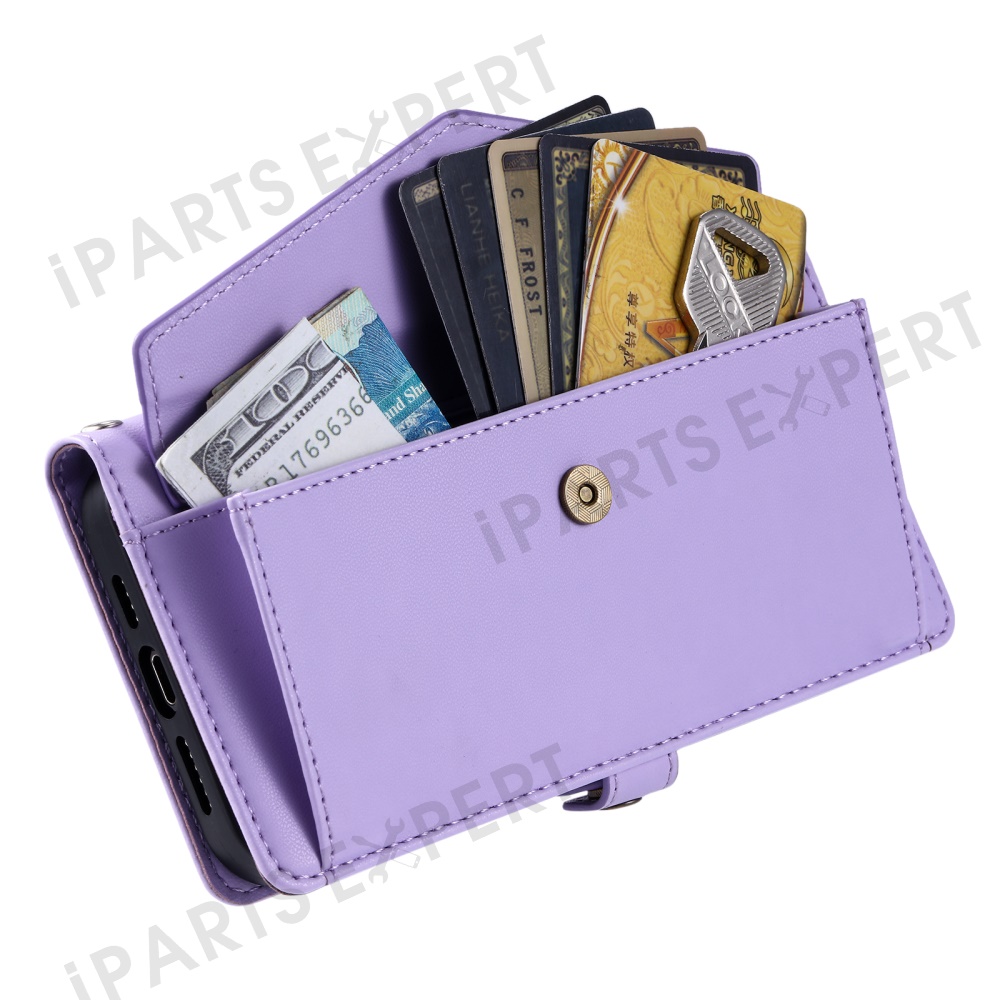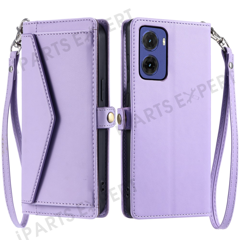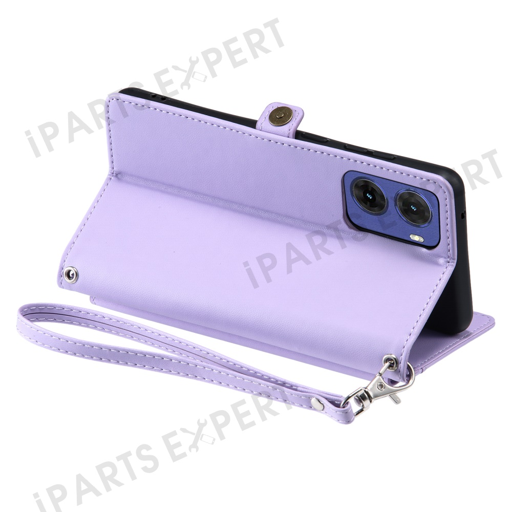 For Motorola Moto G05 4G Leather Case Wallet Stand Phone Cover with Straps - Purple
