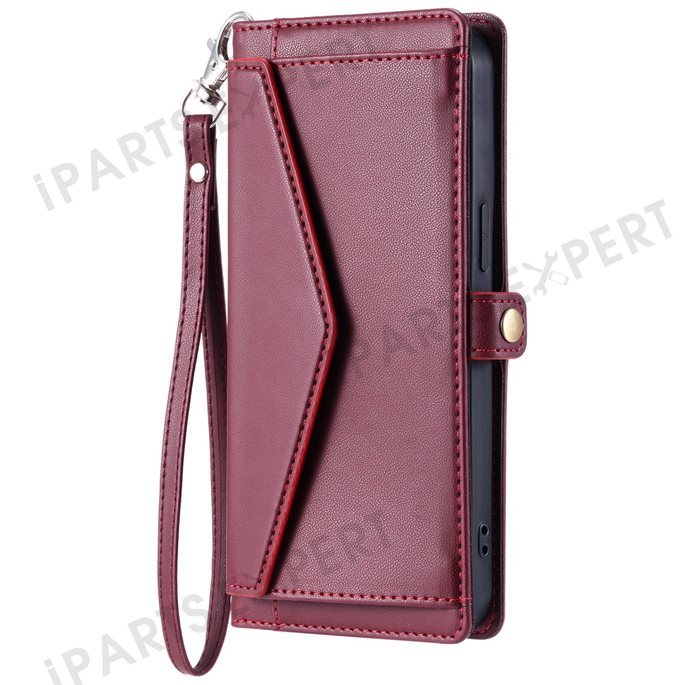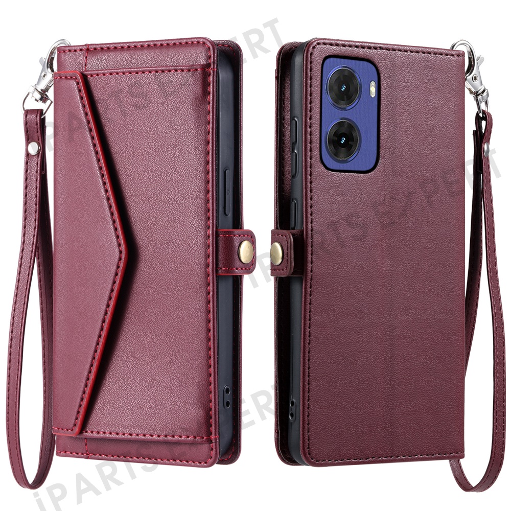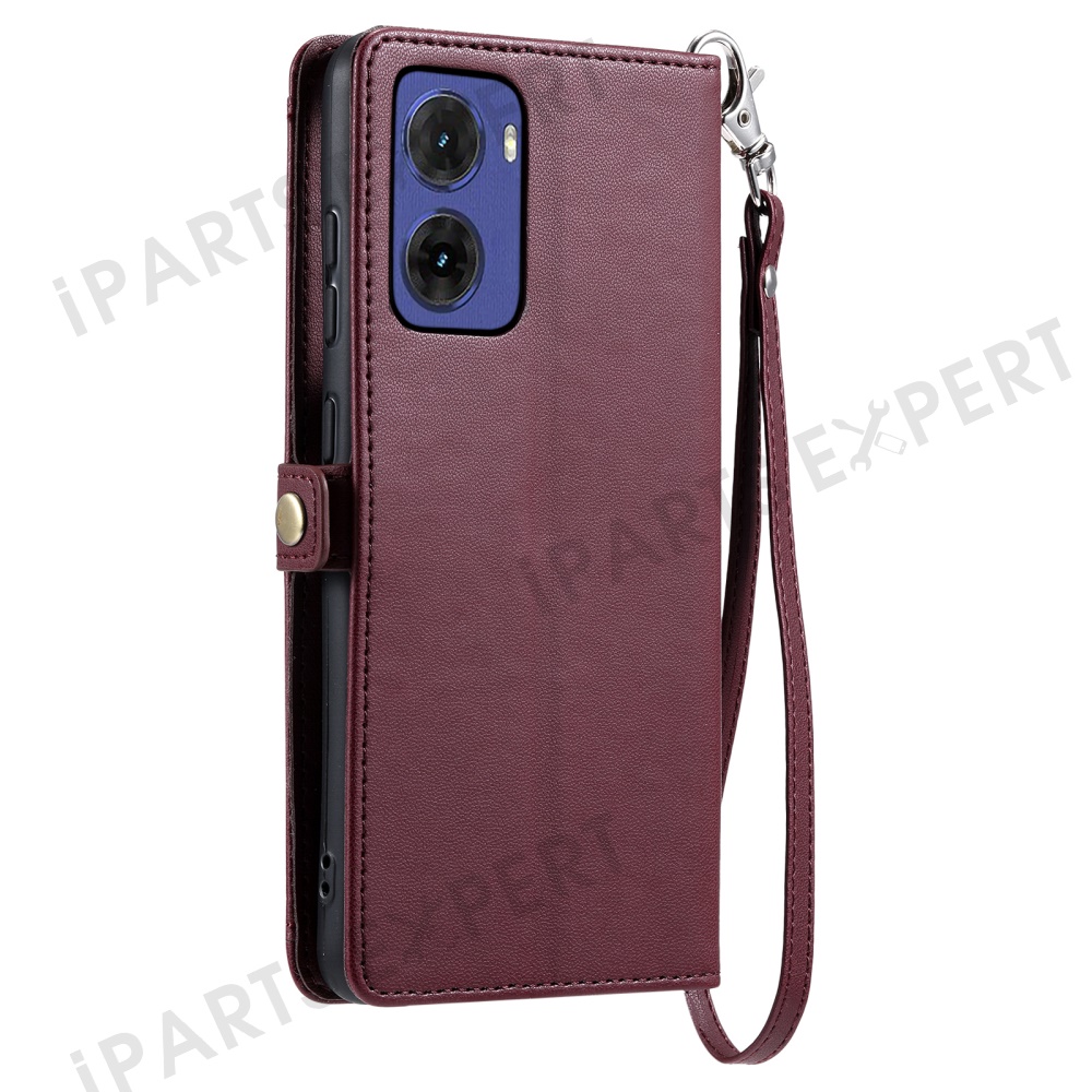 For Motorola Moto G05 4G Leather Case Wallet Stand Phone Cover with Straps - Wine Red