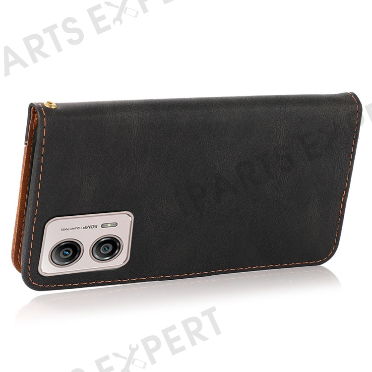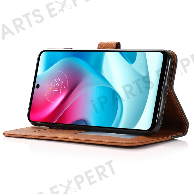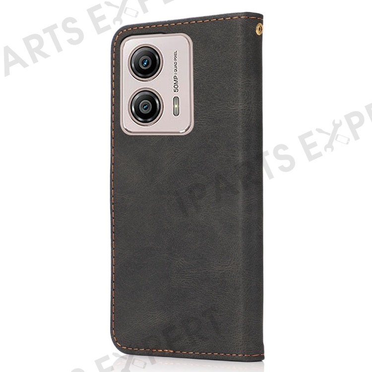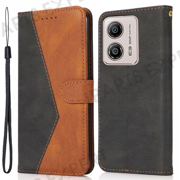 For Motorola Moto G13 4G Anti-drop Stand Case Splicing PU Leather Wallet Phone Flip Cover - Black / Brown