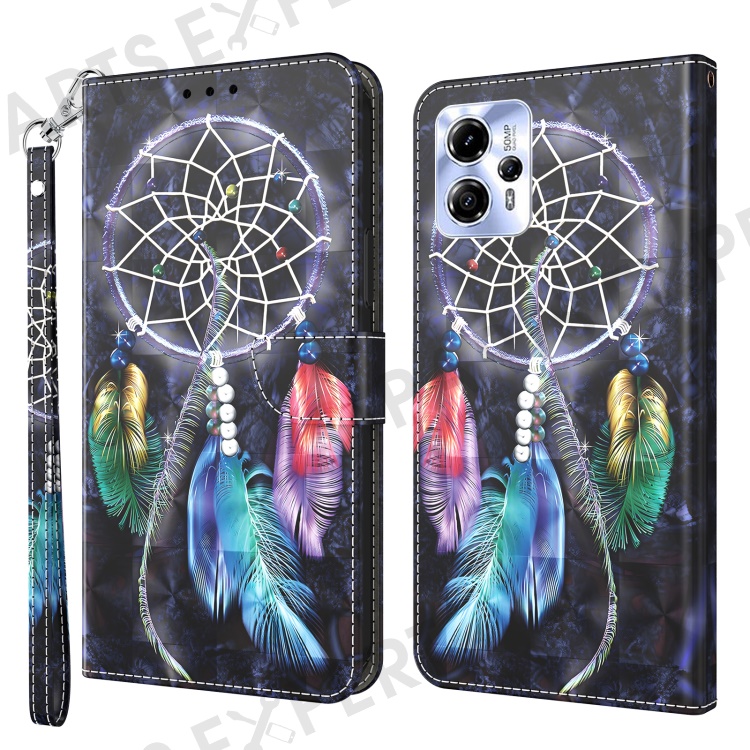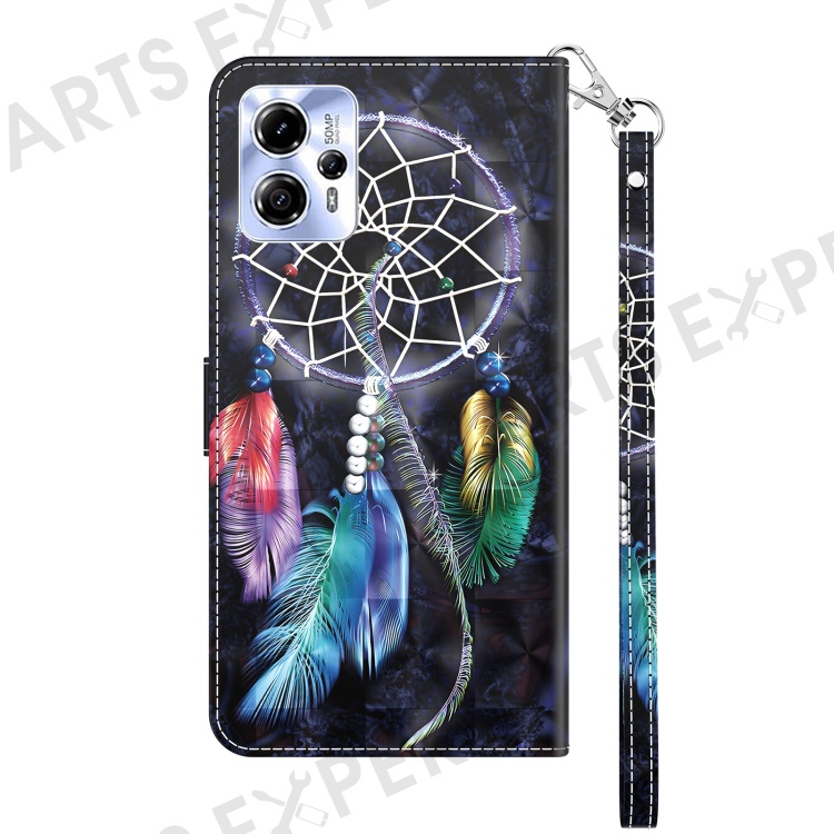 For Motorola Moto G13 4G / G23 4G Anto-drop Phone Case 3D Pattern Printing Flip Wallet Cover Stand with Strap - Dream Catcher