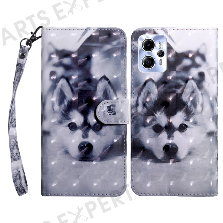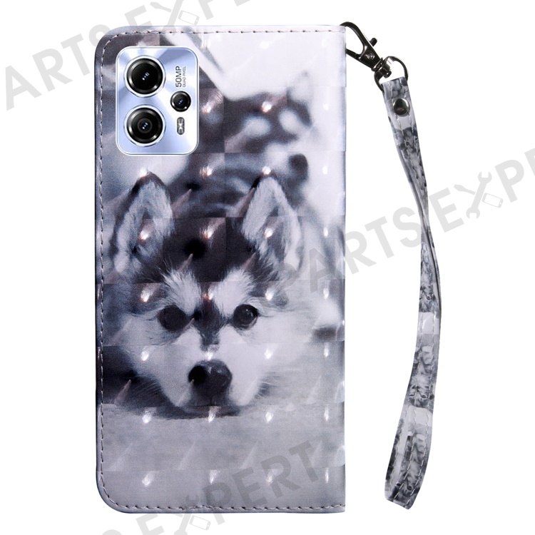 For Motorola Moto G13 4G / G23 4G Anto-drop Phone Case 3D Pattern Printing Flip Wallet Cover Stand with Strap - Husky