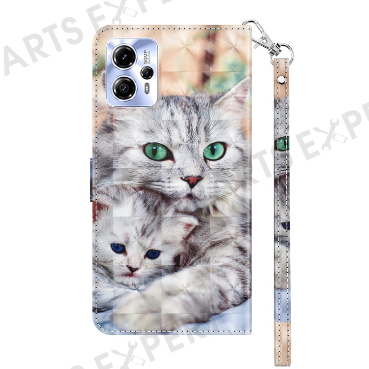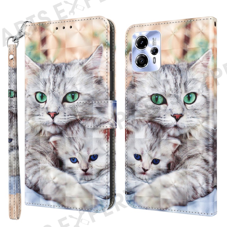 For Motorola Moto G13 4G / G23 4G Anto-drop Phone Case 3D Pattern Printing Flip Wallet Cover Stand with Strap - Two Cats