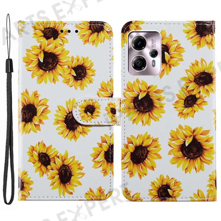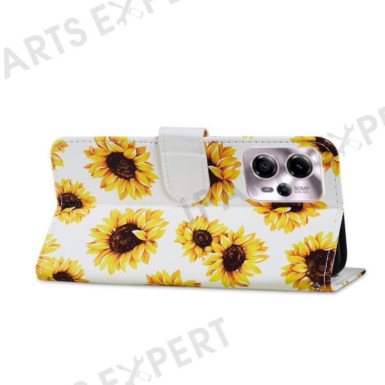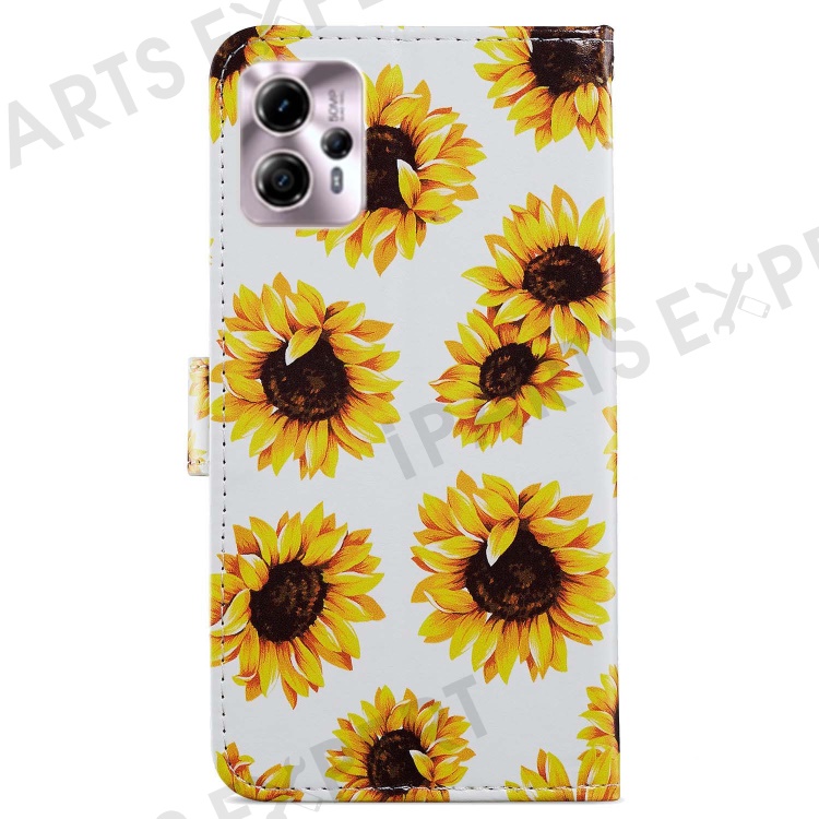 For Motorola Moto G13 4G / G23 4G / G53 5G PU Leather Wallet Case Pattern Printing Stand Flip Protective Cover - Sunflower
