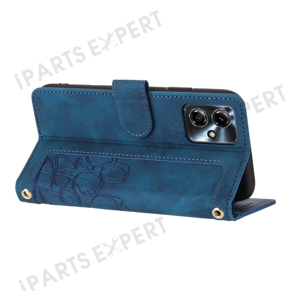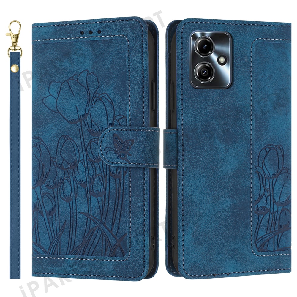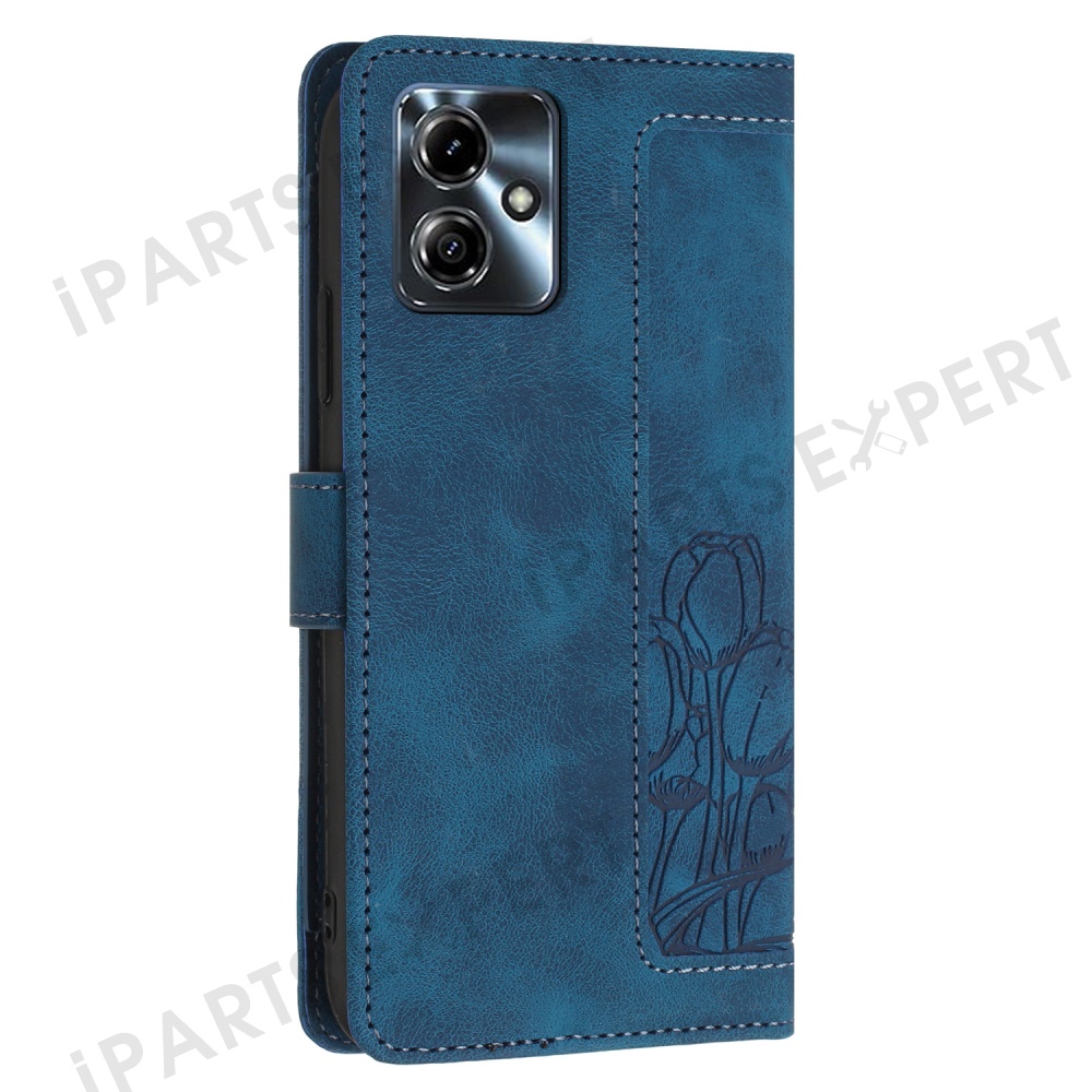 For Motorola Moto G14 4G Tulip Leather Case Phone Cover with 5 Card Slots Wallet - Blue