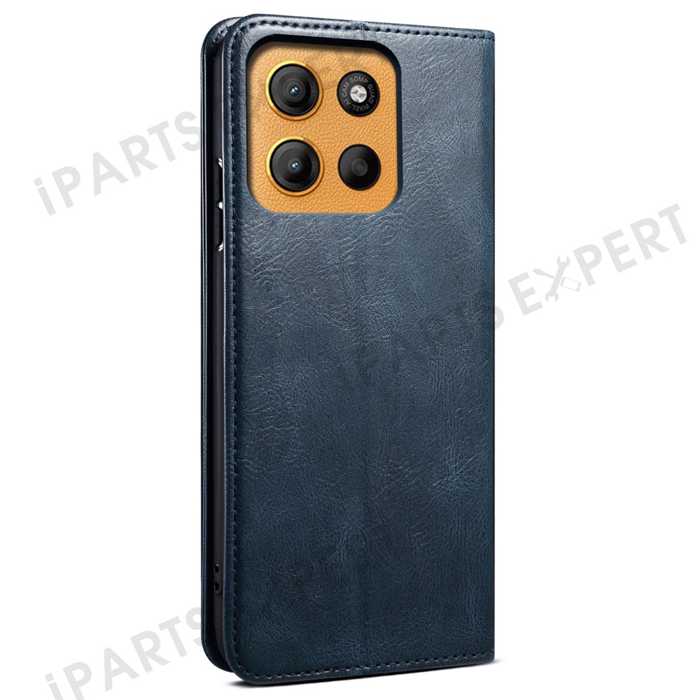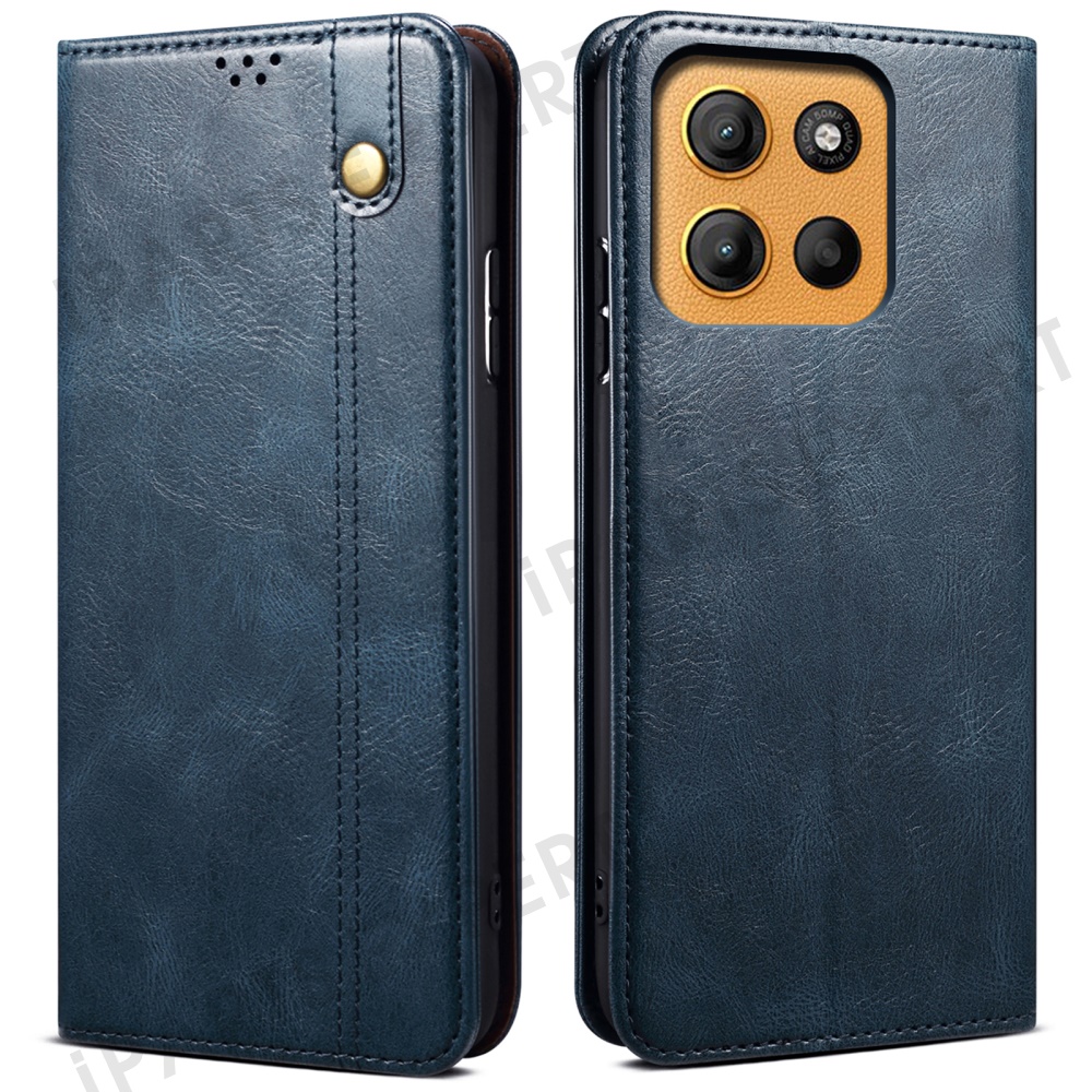 For Motorola Moto G17 Power 4G / G17 4G / G15 4G Case Crazy Horse Texture Waxy Leather Wallet Stand Phone Cover - Blue
