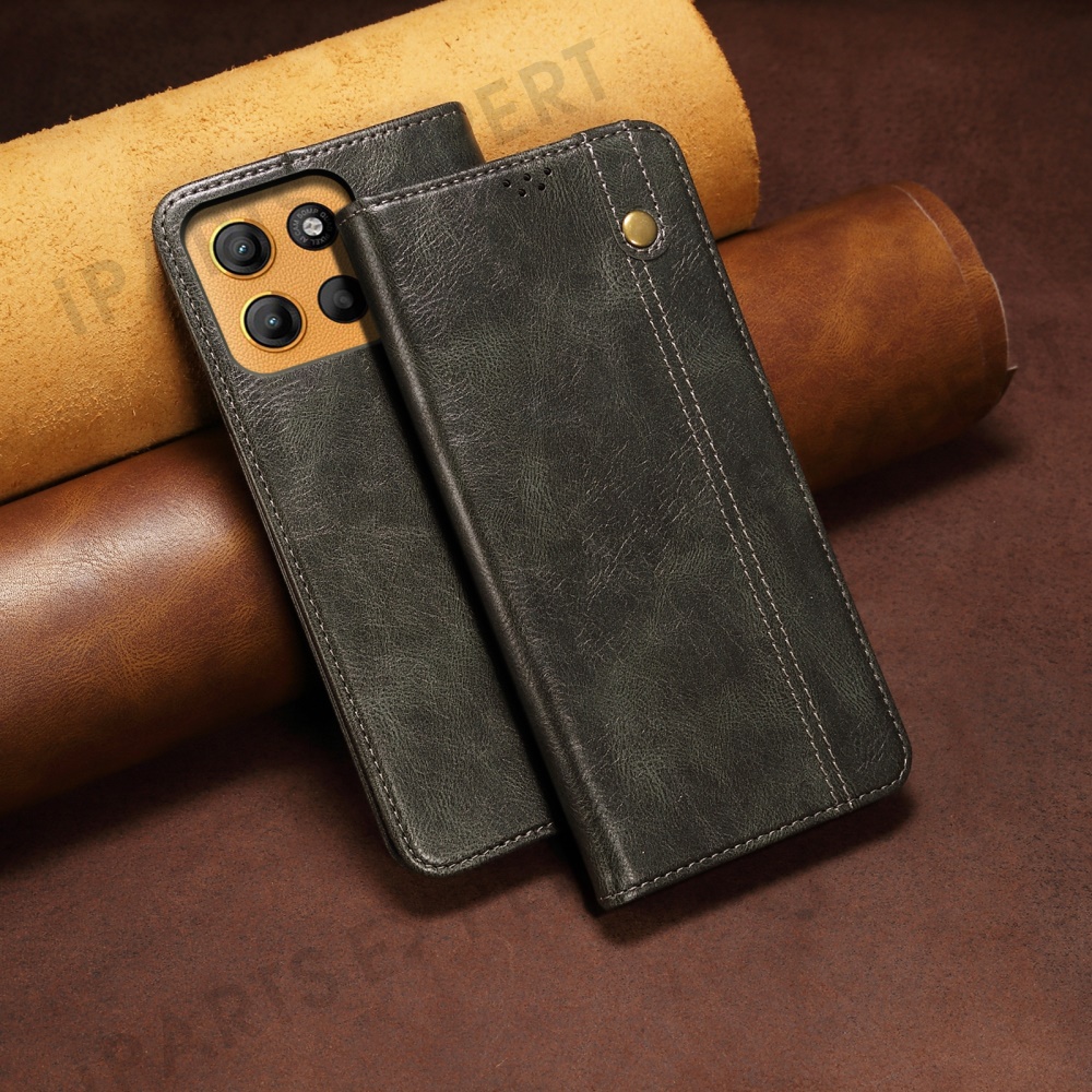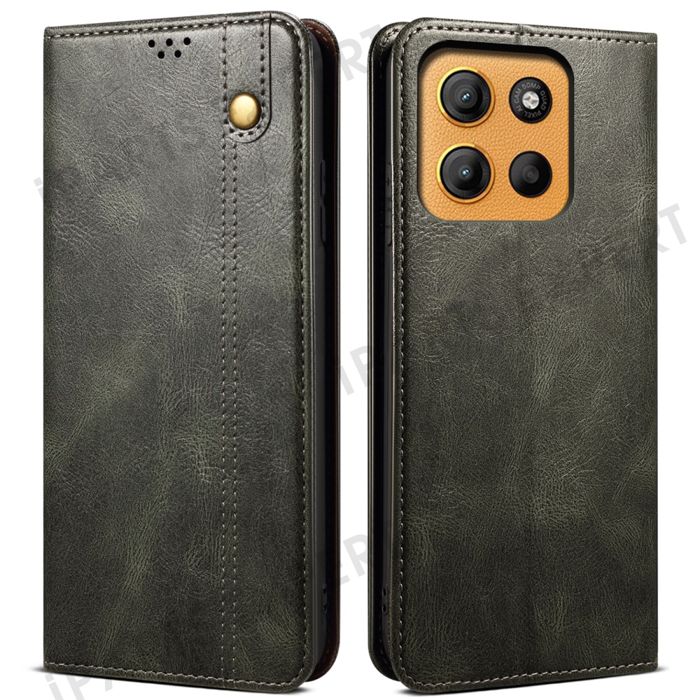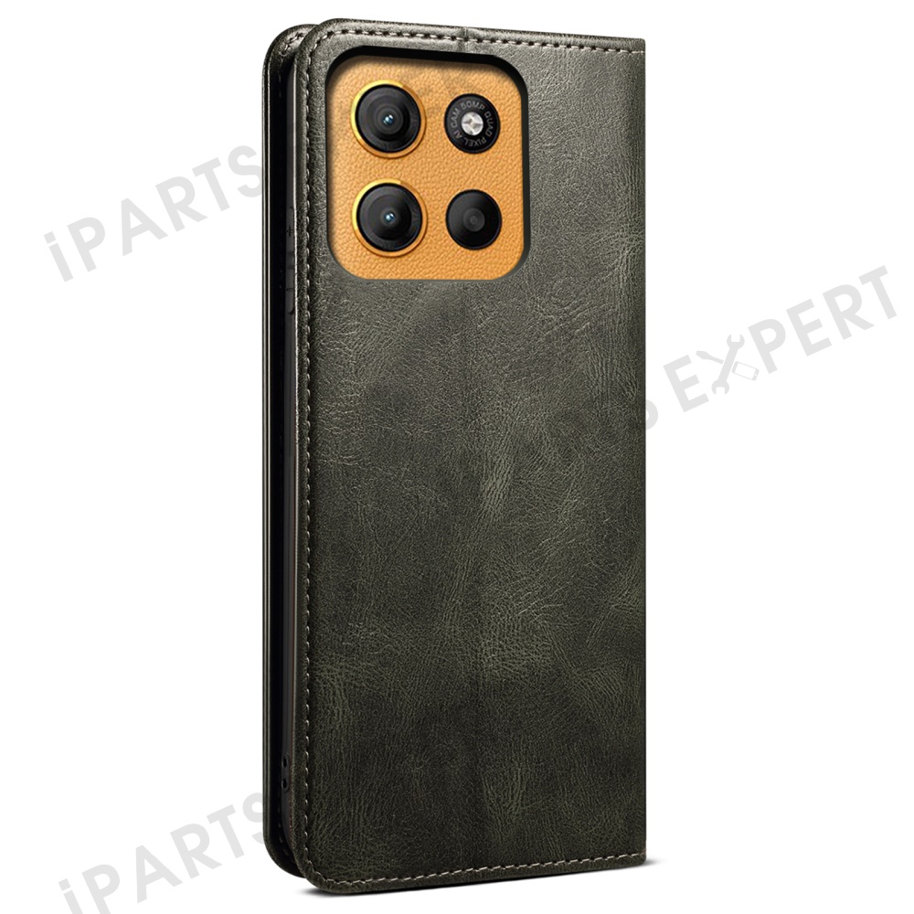 For Motorola Moto G17 Power 4G / G17 4G / G15 4G Case Crazy Horse Texture Waxy Leather Wallet Stand Phone Cover - Green