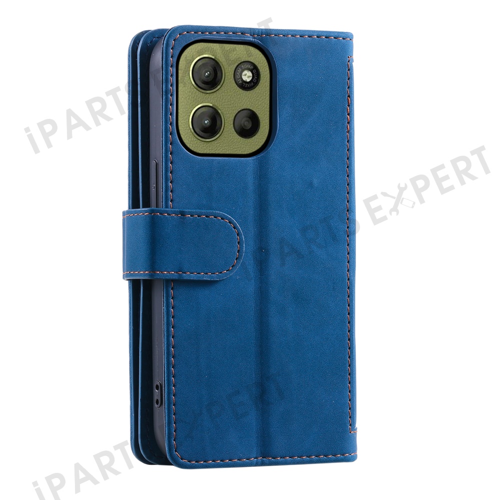 For Motorola Moto G15 4G Case PU Leather Phone Cover with Zipper Wallet 9 Card Slots - Blue