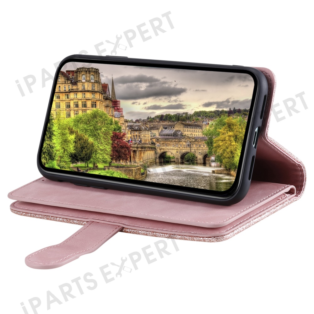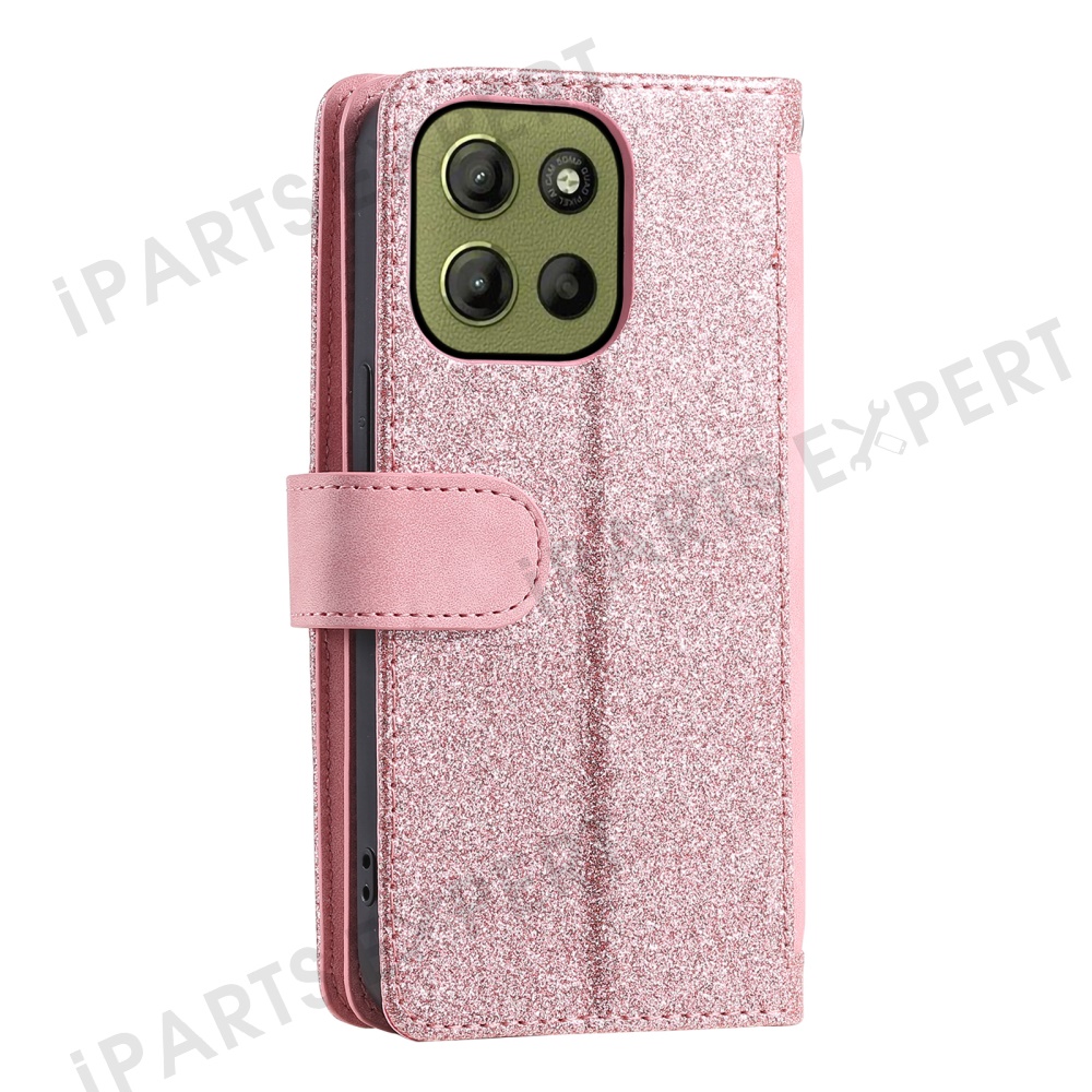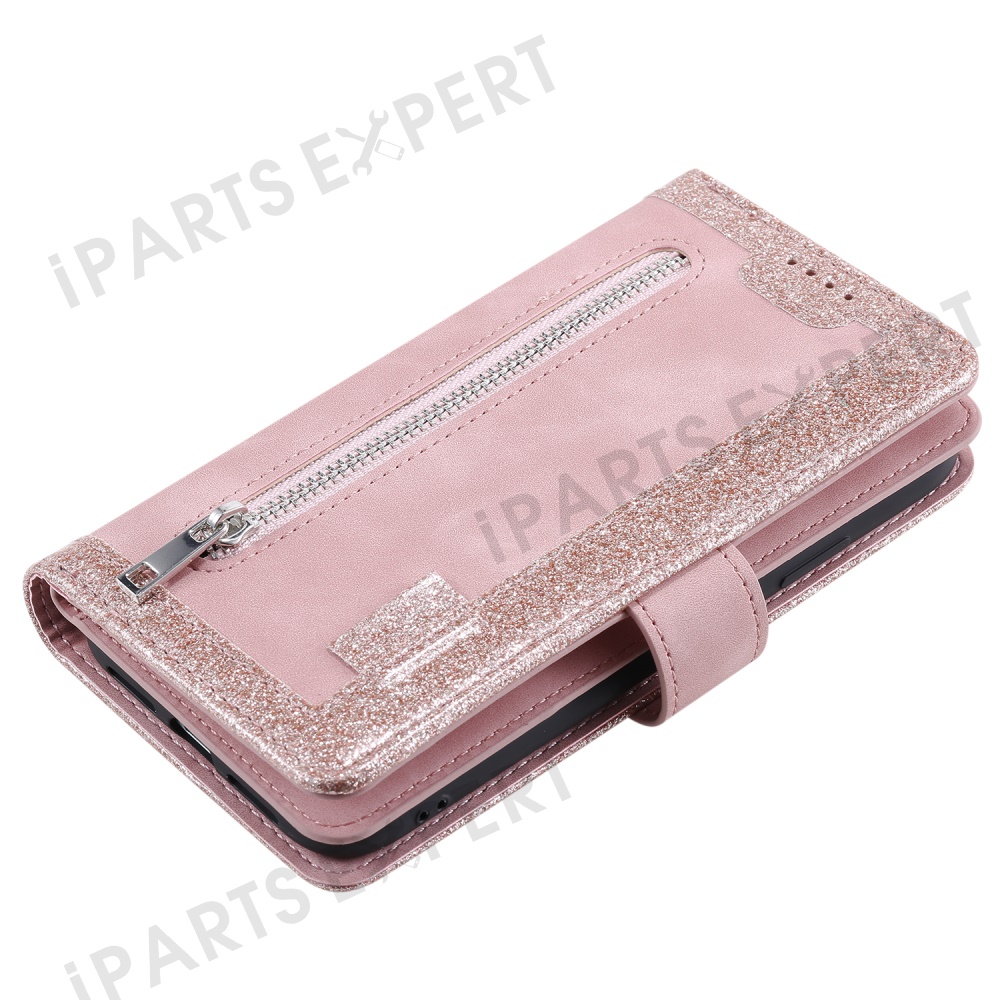 For Motorola Moto G15 4G Case PU Leather Phone Cover with Zipper Wallet 9 Card Slots - Rose Gold