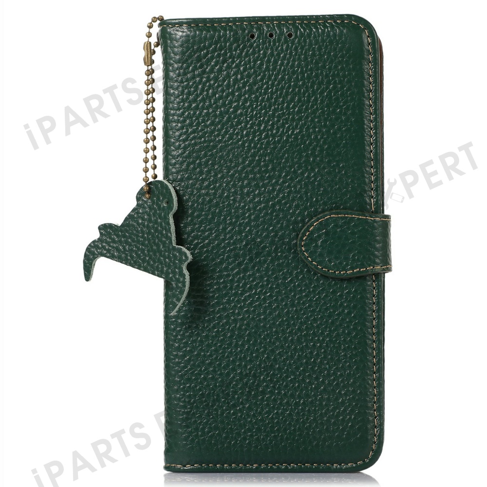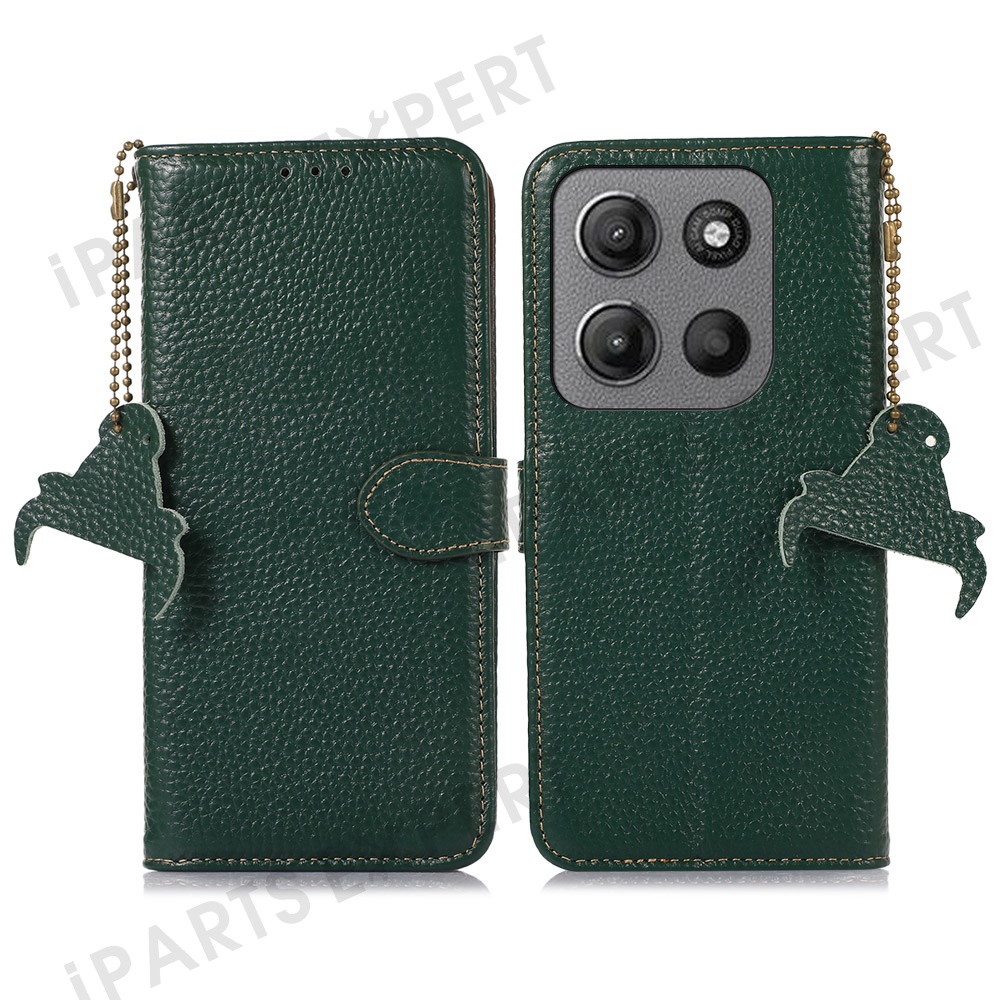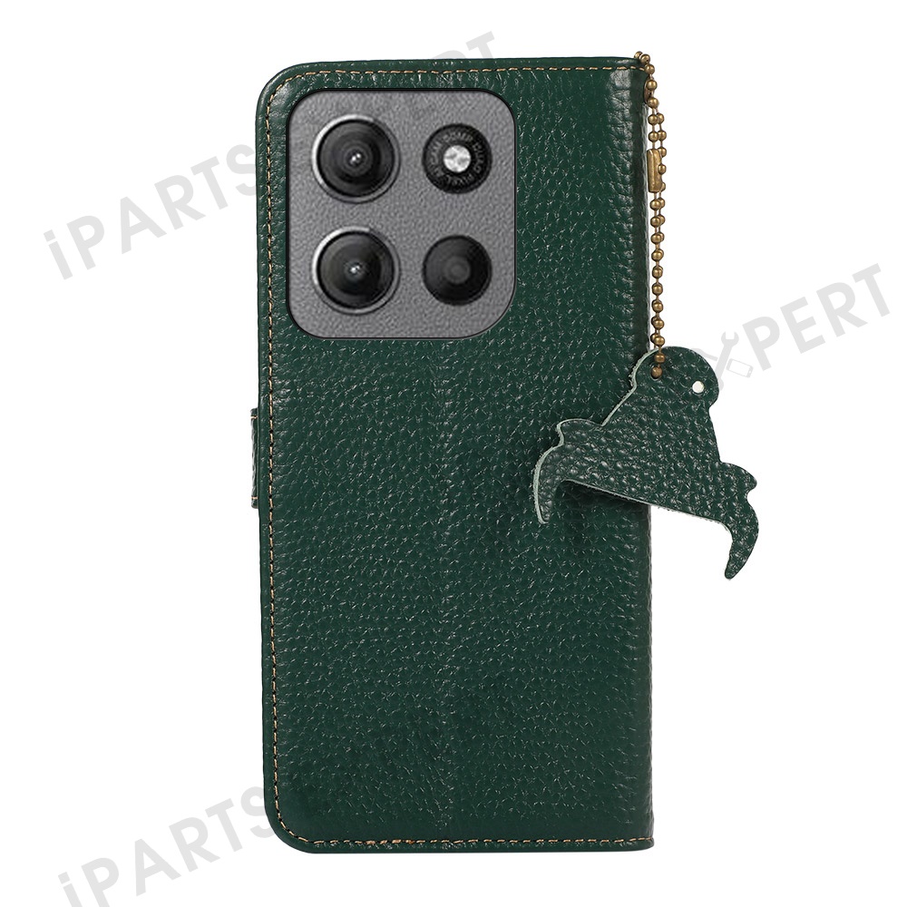 For Motorola Moto G17 Power 4G / G17 4G / G15 4G / G05 4G Case RFID Blocking Genuine Cow Leather Phone Cover Litchi Texture - Green