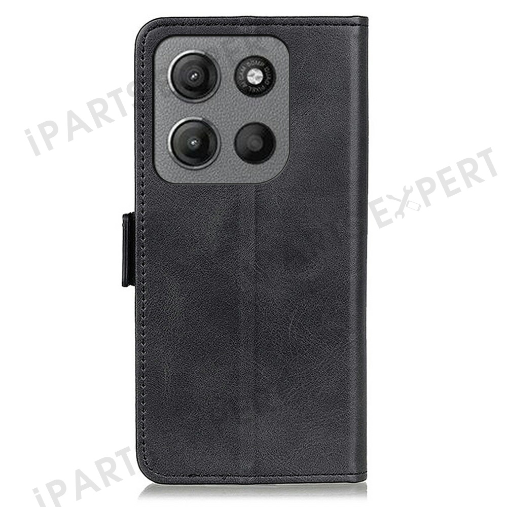For Motorola Moto G15 4G / G05 4G Case Stand Cowhide Texture PU Leather Phone Cover - Black