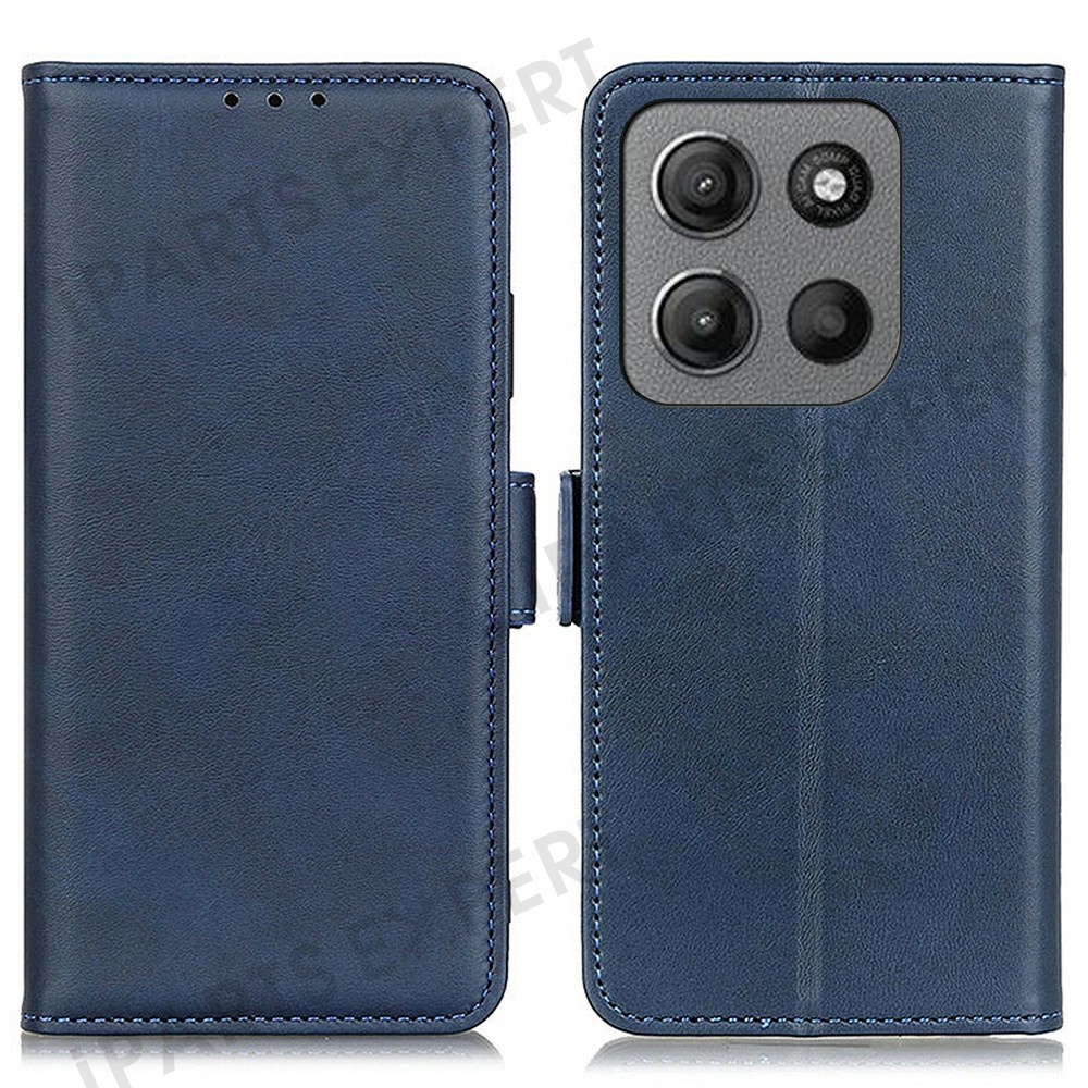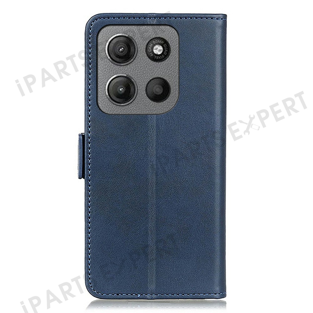 For Motorola Moto G15 4G / G05 4G Case Stand Cowhide Texture PU Leather Phone Cover - Blue