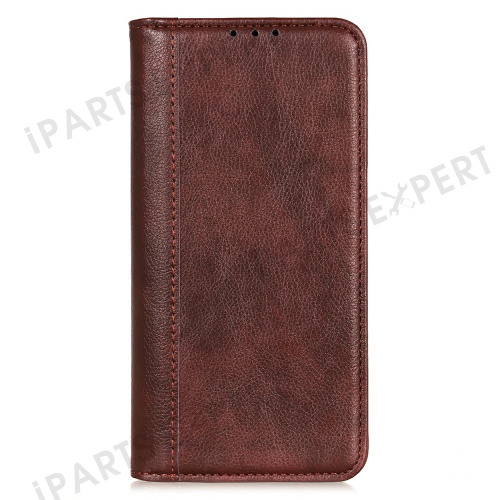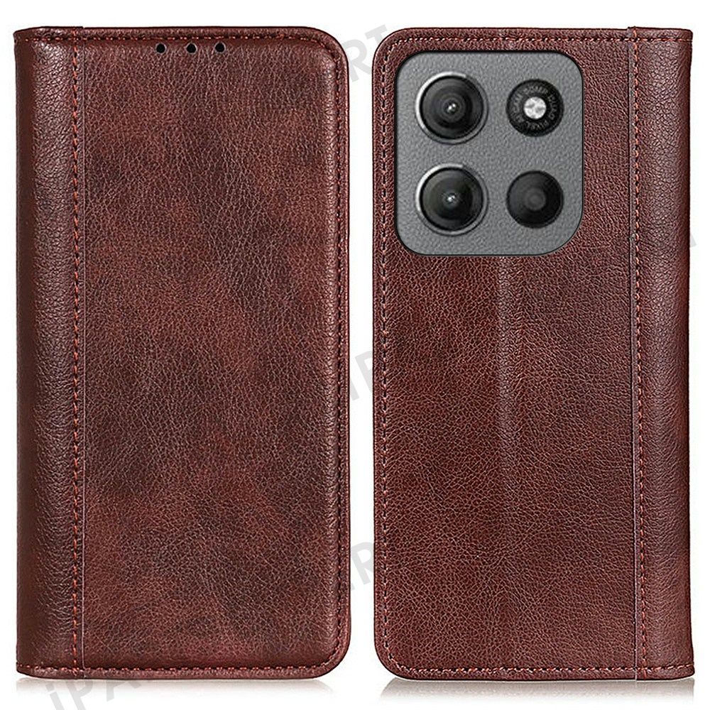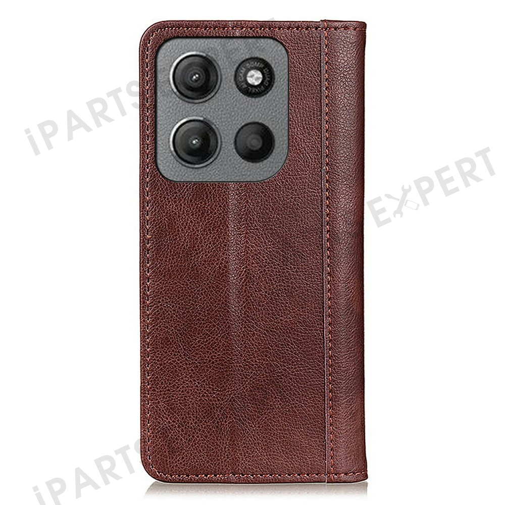 For Motorola Moto G15 4G / G05 4G Stand Case Split Leather Litchi Texture Wallet Phone Cover - Brown