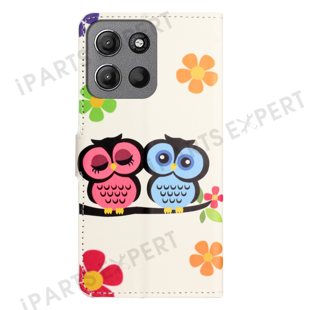 For Motorola Moto G17 Power 4G / G17 4G / G15 4G / G15 Power 4G Case Pattern Print PU Leather Wallet Phone Cover - Couple Owls