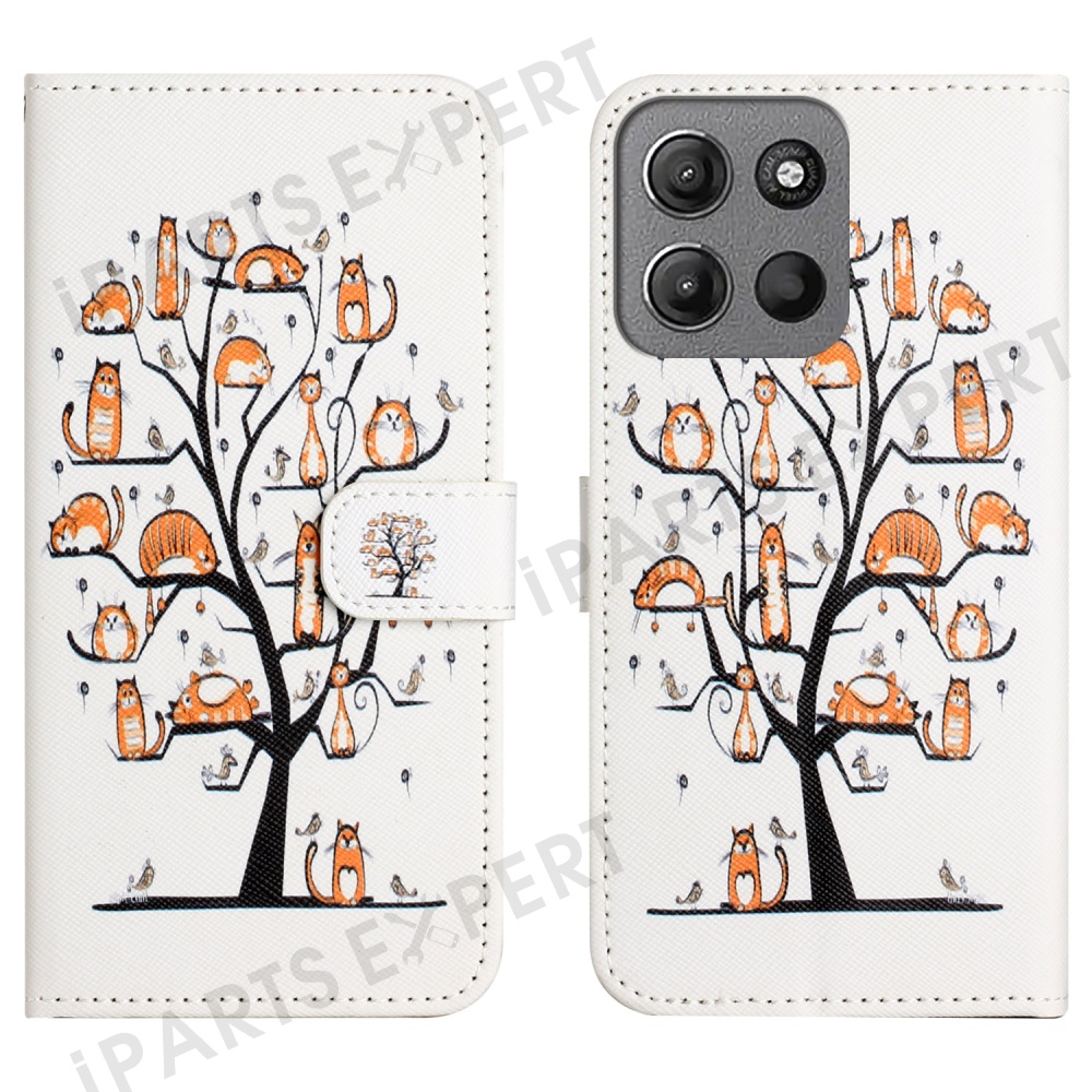 For Motorola Moto G15 4G / G15 Power 4G Case Pattern Print PU Leather Wallet Phone Cover Cross Texture - Cat and Tree